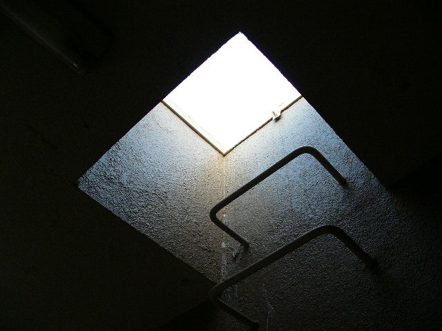 ここから屋上に上がります。 こんなアンテナが有りました。UHFをVHFに変換してありますので、このままではデジタルは映りません。