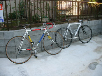 二台とも私の自転車です。ロードレーサーです。重さはどちらも10キロ弱です。 不思議なことにタイヤが小さくなったのですが重さは2キロ増えました。12キロくらいです。 10インチのタイヤです。もっと小さくなったのに又1キロ増えて13キロです。タイヤが小さくなるほど重くなってしまいました。当然軽いほうがずいぶん楽に走れます。