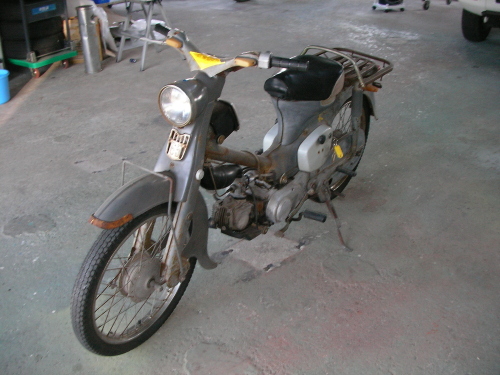 数日前iPoneのケースをオークションで落としました。たまたま金沢の車屋さんでした。このたびは落札いただきまして、まことにありがとうございますm(_ _)m短い間ですが、気持ちよくお取引できますよう心がけますのでよろしくお願いいたします。御社の出品されている「銀線名人」が気になりまして、早期終了させて頂きました(^^)ご都合のよろしい時に商品をお持ちしますので、できればその時に詳しくお話を聞かせていただいてもよろしいでしょうか?よろしくお願いします逆に私はこの方の出品されている、古いスーパーカブが気に成り見に行きたいと言いました。時間を約束してお尋ねし、デモカーに乗ってもらいました。信じられない、こんなにスムーズに走るのは。やはり車屋さんだという事が邪魔になるのですね。エンジンをボアアップしているのではないか?全て隠さずに見せて説明しました。そこで私は考えました。貴方のクルマに魔法をかけます。魔法だと思えばいいのです。理屈を考えない事です。最新技術というより未来の技術ですから、理解できる方がおかしいですね。魔法です、銀線マジック。最後にそのスーパーカブの写真を載せます。昭和30年の後半の65ccです。状態はいい方です。私は10000円くらいなら買ってもいいかななんて思ってました。そっとその出品者の方に聞いてみました。「いくらくらいまで上がるかね?」彼は「3万くらい」と答えました。私はそんなに上がるかなと思ってましたが、いざ蓋を開けてみたら3万円付いてました。私は急いで電話をし「恐れ入りました。大したものだ」といいました。落札額はもう1000円上がって31000円でした。なかなか鋭い人でした。