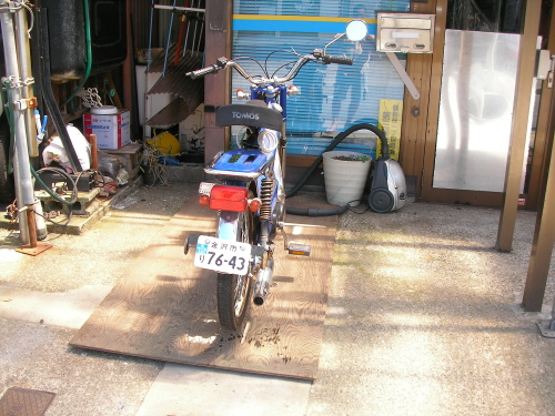 トモスで自走してナンバー変更に行ってきました。モペットで唯一の二速オートマで、思ったより良く走り、ほとんど普通の車と同じ時間で移動が可能でした。信号があるからすぐに追いつきます。やはり、思ったとおり、金沢には一台もないような感じです。なんじゃあれはというような、好奇な視線が私に刺さります。ああ嬉しい!!トモス一号はまだ走れません。