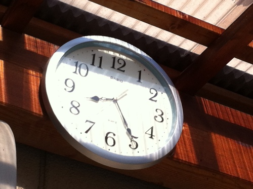 缶、ビンの日に時計が狂っていたのが気になって、この日に脚立を持って行って直しました。だ~れも直してないのだから。