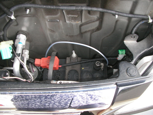 10時三十分ごろにわざわざ岐阜から2時間余りかけてきてくださいました。私は遠足の前の晩の小学生のように嬉しくてあまり眠れませんでした。さて、予習した通り、ウォッシャー液のタンクを外しその下のバッテリーにつなぎます。一時は室内を通そうかとも思いましたが、そうするとまた外へ出さなければいけないので全部外から廻しました。真中から少し左のほうのお腹の所に這わせました。お客様にも手伝ってもらい、約一時間。やっと完成、やっぱり、今までで一番手間がかかりました。しかし、1m発進して、即違いを体感されました。大成功です。回転寿司とスタバでアイスチャイで楽しいひと時を過ごし、サンバースーパートラックも試乗していただき今頃は高速を家路に走っていらっしゃいます。後で行きと帰りで燃費の違いを教えてくださることでしょう。