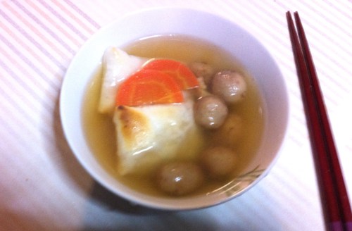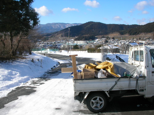 昨日も今日も残念ながら昼飯は抜きです。仕事に時間がかかりすぎるのです。当初の予定の半分くらいしか消化できてません。しかし、昨日は一軒目で、私たちが工事に来ていることを知った息子さんがたまたま会社でお正月明けの鏡割りのようなことをしていたらしいのです。めった汁のような具沢山の味噌汁を、私たちのためにわざわざ届けてくださいました。われわれは工事中でしたので気がつきませんでしたが、お餅も焼いていただきたくさん食べさせてもらいました。またほかのおうちでは、寒いでしょう何度でも遠慮しないでコーヒーのお変わりをしてくださいねといってくださいましたし、また三件目では毛糸の帽子までもらいました。いい事ばかりですが、思うとおりに稼げないことだけが残念です。