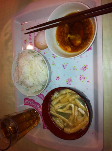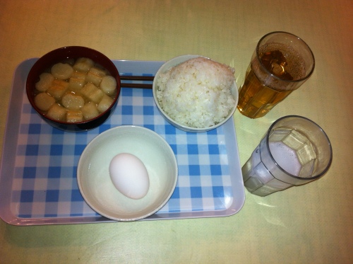 まだおかずが出来てないのでとりあえず持ち込みの卵で朝飯前をスタートします。おかずが出来てからほんとの朝飯だよ。