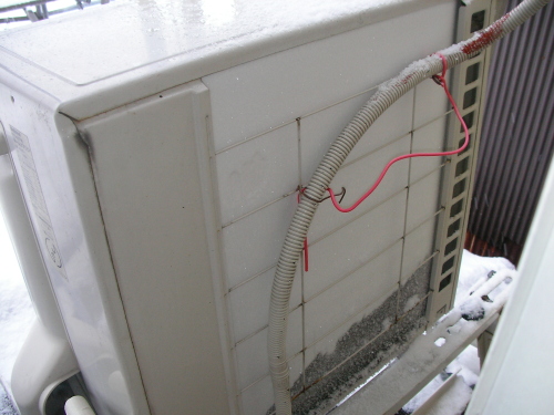 エアコンの仕組みとは電気を熱に直接変換すると実に効率が悪い。そこでコンプレッサーを使って熱交換、寒いところへもっと寒くするとその分室内があったかくなる。そうすれば室外機が凍る。凍れば溶かさないと熱交換ができない。室内が寒くなる。夏も同じです、外は暑いのにそこへ(*´д`*)モット激しく!!熱い熱を出す。その文だけ室内が涼しくなる。