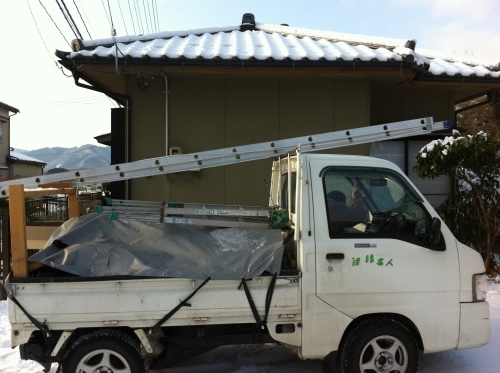 今までまれには冬に屋根に上ったことはありましたが、毎日はつらいものがあります。雪がなくてもすべるのに、雪があるしその上凍ってるのに。馬鹿でないのという声が聞こえてきそうです。まあ、ここ岩手は寒いの何の、その上風が強いというもんではない。昨日ははしごが倒れ、重い私も吹き飛ばされそうになりました。