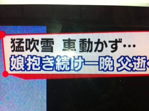 誠に残念なことでした。ここ金沢でも過去に数回、死者は出ないまでもそのようなことは経験済みでした。よく吹雪で埋まった車を助けに出動しました。また道がどこかわからないことも何回か経験しました。車の中で一酸化炭素中毒で4人死亡の場合と車から出てホワイトアウトで娘さんをかばってお父さんが凍死。止まるも地獄、行くも地獄。どちらも電話でSOSをしてはいるのだが間に合わなかった。ある程度は自分で措置をしないと生き残れない。サバイバルをもっと勉強しなくてはいけない。ホワイトアウトで思い起こすのは、八甲田山死の彷徨という映画である。訓練された軍隊でも失敗したのだ。せっかく先人が教えてくれたのにそれを活かすことができなかったことは誠に残念です。今回の犠牲を無駄にしないように我々は行動しなくてはいけない。