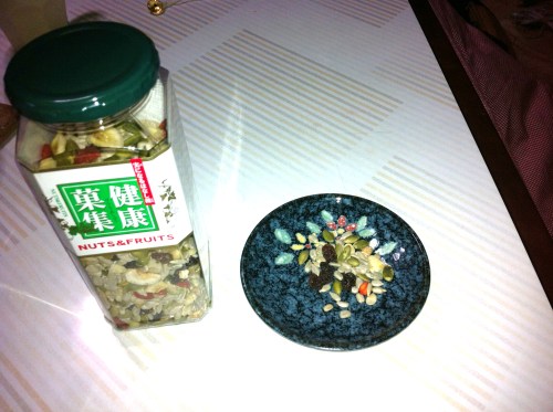 ひまわりの種、かぼちゃの種、スイカの種、クコの実、レーズン、バナナ、カシューナッツ、アーモンド、砂糖、植物油、食塩、香料などが入ってますが、つまり、鳥の餌+ドライフルーツほか。三日で3ボトル食べました。とにかくこれは効きますよ、トイレ直行、効果大です。しかしこれは350gで598円もする、賞味期限間近で半額で三本全てゲット、すべて完食。そのほか白湯(40~50度)を飲む。キウイも効くよ。今は白湯とキウイだけ。実は昨日から花粉症?鼻水がでる。なんとかこれが効いてくれればな?
