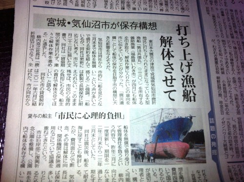 北陸中日新聞に載ってました。自治体は残したい、持ち主は海に返すにもかなりのお金がかかるし、解体して忘れてしまいたいと思っているのでしょう。丁度一週目に私が見てきたそのものです。