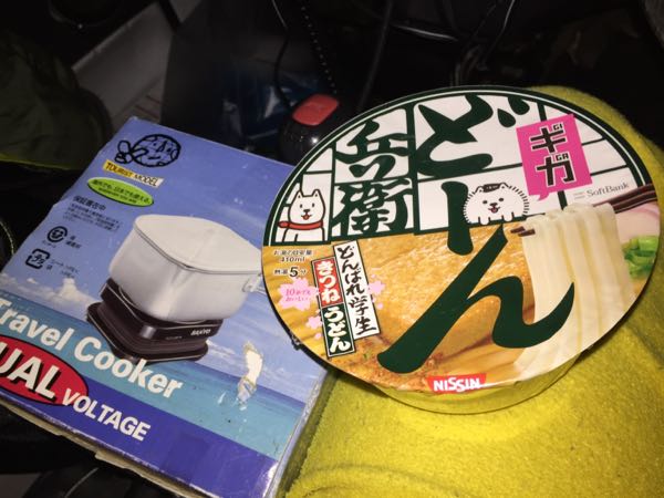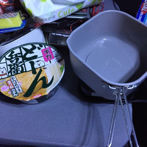 SANYOの世界で使えるトラベルクッカーを持ってきた。 水も十分に積んでるが、肝心の箸が無い。仕方が無いので新品の歯ブラシで食べよう。 探せば何処かにあるはずですが。