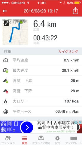 これは近場だが朝ロードレーサーでの数値。最高速29.1キロ、平均8.9キロリカンベントはこれ最高速40.3キロ、平均11.9キロ理論上リカンベントは空気抵抗が少ないのでスピードは出るはずですが私が余り慣れてないので思いの外スピードは出てませんが40キロならまあいいか。家から出てしばらく走ったのですが、エアーが少ない。このままだとパンクするので、ガソリンスタンドでエアーを入れてもらいました。このリカンベントはアメリカ製なのでエアーバルブも車と同じなのです。この日はロードレーサーとリカンベントで34キロほど走れました。久々の運動でした。毎日少しづつしないといけませんね。