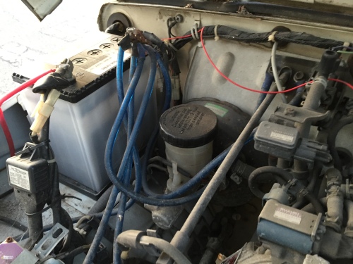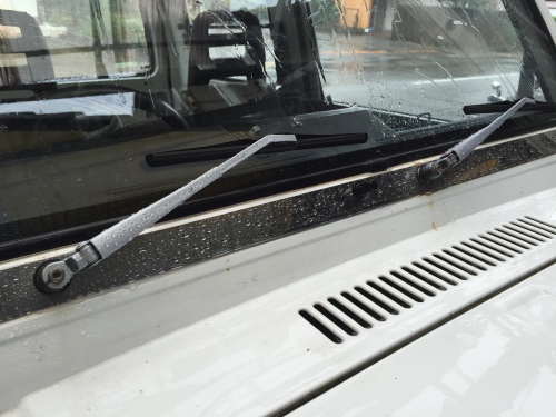 盛岡から帰って来る時から全くワイパーが動かなかった。ボンネットの中にはなかった。インパネをはずさなければならない、ああめんどくさいと思っていた。昨日ディーラーで聞くとヒューズは切れてないと言っていた。ああヤッパリインパネやメーターを取り外さなくてはならないかと思っていました。触媒とリアシートをもらいに敦賀へ出発したそのしばらくあとにほんの少し雨粒が。ついワイパーを動かすと なんだか申し訳無さそうに動いたのでした。その後何度も動かしましたが大丈夫です。ジムニー名人に聞きましたら、よくあることでワイパーアームを外してスプレーしておくと良いと教えてもらいました。サビで動きにくくなるのだとか。その他たくさんのことを教えて頂きました。行ってよかったジムニー名人のアジトへ。
