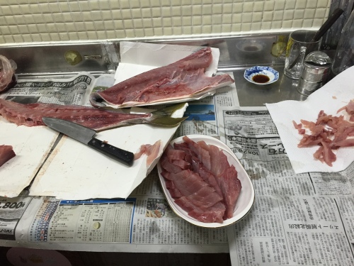 かなりでっかいブリが手に入った。特殊なルートが有るのです。解体ショーは嫁と娘がかかりっきり。刺し身もぶっとくて大きい。二枚目の写真で大きさが解ってもらえるでしょう。すし飯と4切れが私の夕食でした。あと豆腐少々。残念ながらこの大きさは写真では良くは伝わらないだろう。
