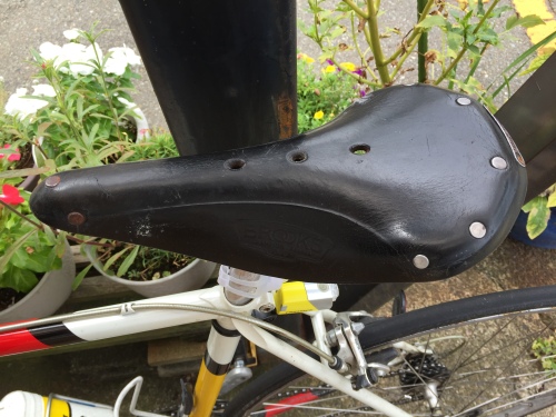 私の場合は前7.5、後ろ8キロ入れています。英国革サドルブルックスを乾かす為に自転車で行くというのが言い訳です。帰りに体重が重いのでサドルの角度が上がってしまいました。それからハンドルの先につけてあった超小型バックミラーが無くなってしまいました。無事マフラー代金を送金出来ました。