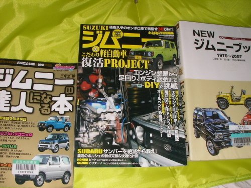 もう一冊頼んであります。ジムニー軽量化大作戦ですが車検が通ったら進みます。真ん中の本にはサンバーの特集もありましたので大変価値有りです。