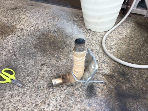 小型のロケットストーブを造ってみたかったのだが、どうも失敗のようだ。ゴーゴーといい音では燃えてはくれなかった。
