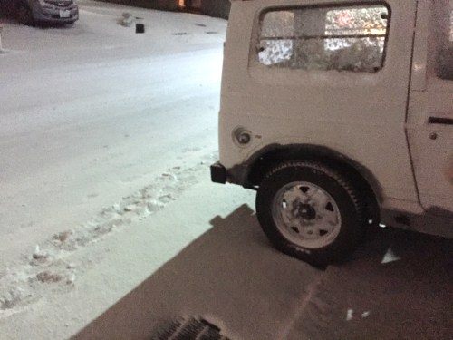 この靴はだいぶん前に買っておいたのですが初めて履きました。しかし、意外と滑るんですよ。ゴアテックスで水が漏らないでいいんですがね。夜のうちの前の道は凍ってしまって歩くとツルツルです。この頃はあんまり凍らないのですがね~。昔はすごかったんですよ。サイドブレーキを引いて駐車していたら朝になったら凍ってサイドブレーキが効いたままとか、キーの穴が凍ってしまうとか。今はめったにありません。今の処は金沢は雪が少ないです。あああ、そうでした。昨日の夜中にボイラーのお湯が出なくなってしまいました。屋根雪が配管に当たって外れてしまっていたのでした。その上に板で屋根を付けてあったのですがそれも壊れてしまいました。さてどうして治そうかな。ボイラーは即直しましたが屋根をどういうふうにつけるかです。板で受けるのではなく何本かの棒で少し逃がして雪の落ちてくる力を半殺しにする作戦です。まともに受けると壊れますから。