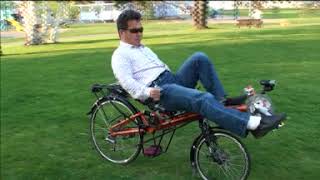 以前もこのブログに載せたと思いますが何度読んでも興味深いです。その後この方は上手く乗れたのでしょうか?続編を読みたいものです。自慢じゃないが、運動神経があんまり良くない私はふらふら乗れるまでに一時間かかりました。しかしリカンベントは面白いですよ。この動画は私が勝手にどこからか持ってきたものですが実に楽しそうですね。リカンベントに非常に興味があり、思わず衝動買いしてしまいました。ハンドルが前にある比較的乗りやすいタイプのつもりで買ったのですが、いざ乗ってみると、進むどころか、こぎ出すこともできず、転倒を繰り返しています。こんなに難しいとは思いませんでした。すみませんがどなたか、正しいリカンベントの発進の仕方、乗り方、練習方法について教えてください。宜しくお願いします。ベストアンサーどのタイプを買ったのでしょうか?正直言って慣れの部分もあると思いますが、サドルの位置はあっているでしょうか?サドルの位置がおかしいと漕ぐのは難しくなります。ペダルが一番遠いときに膝が少し曲がるくらいがいいと思います。あとは、軽いギヤでスタートしましょう。軽すぎても難しいかもしれません。そして一番大事なのは、上半身に力を入れないことです。ハンドルもほとんど手をそえているだけでOKです。もし乗れたら桜並木の道を走ることをお勧めします。普通のアップライト自転車に比べて視界が広くとても気持ちいいですよ。