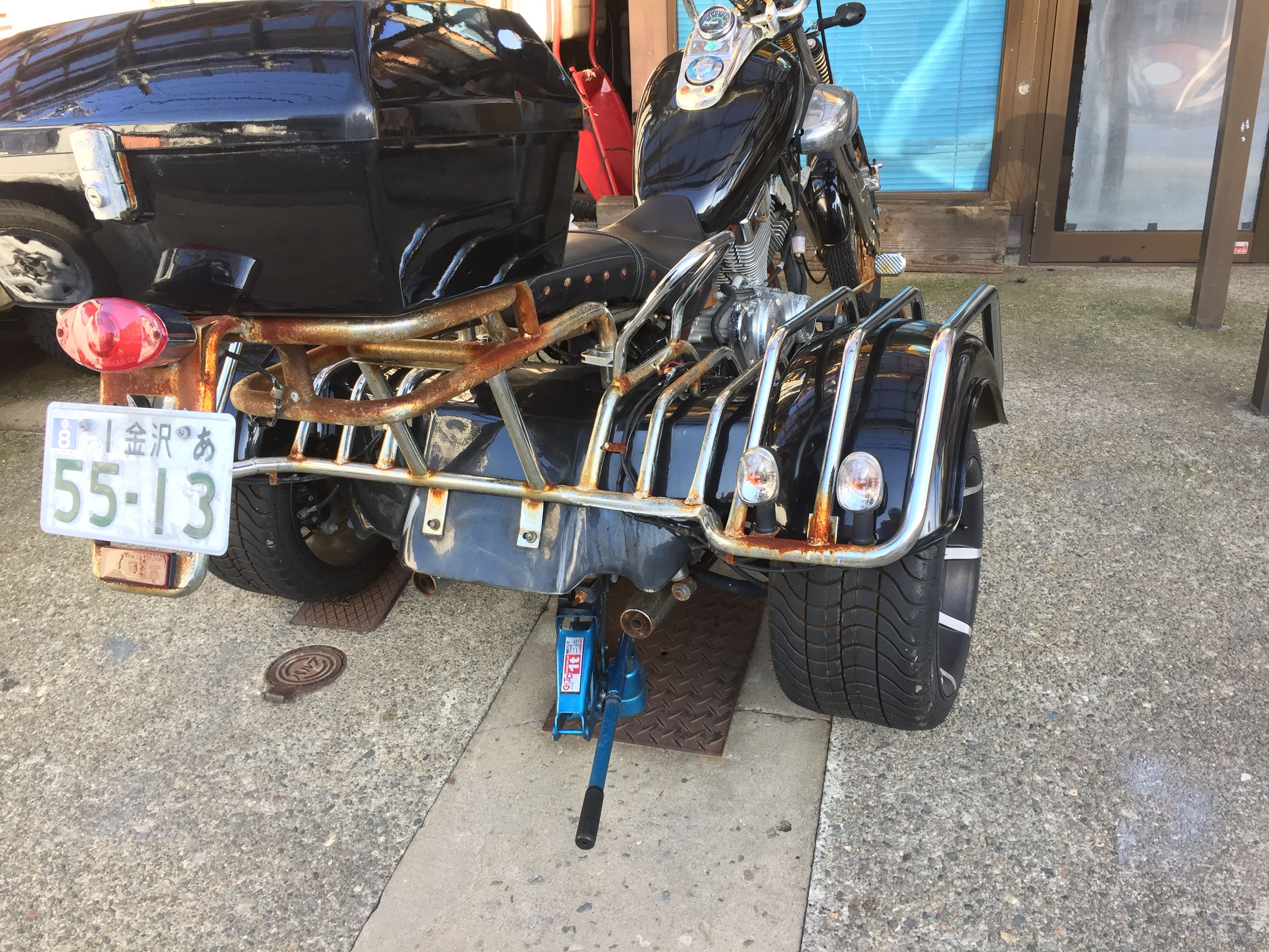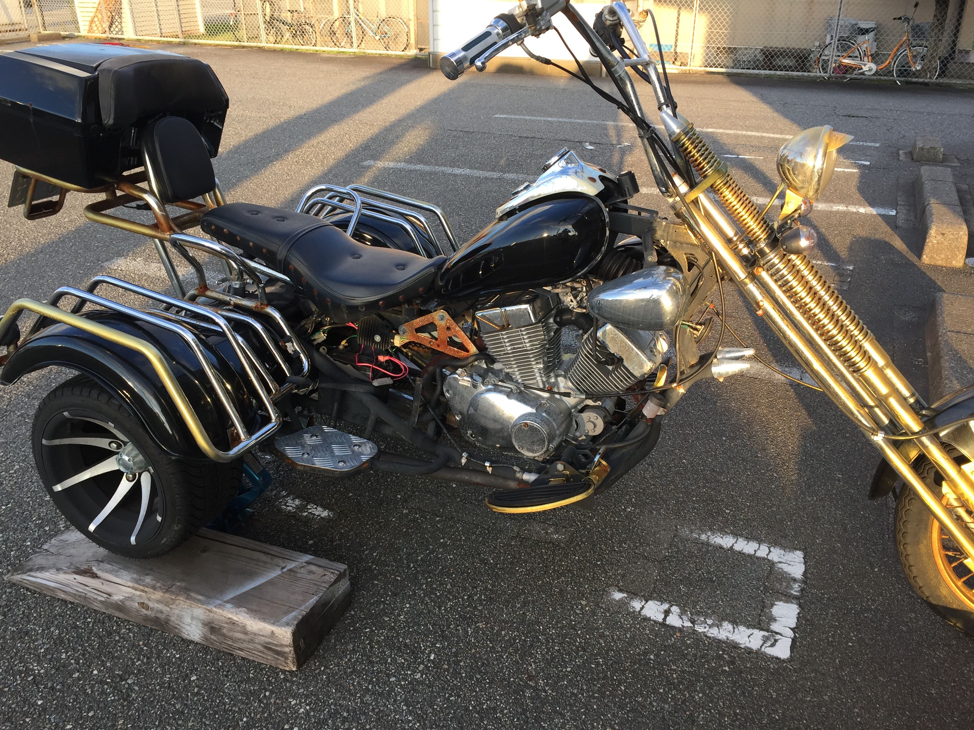 後ろを少しジャッキで上げて直接ベルハンマー噴射。片方二本両方で四本噴射できた。偶々あるお宅の車庫の奥の方にこの中華トライクのコピー元のヤマハビラーゴが居た。大まかには似ているけれどもちょいと違う。