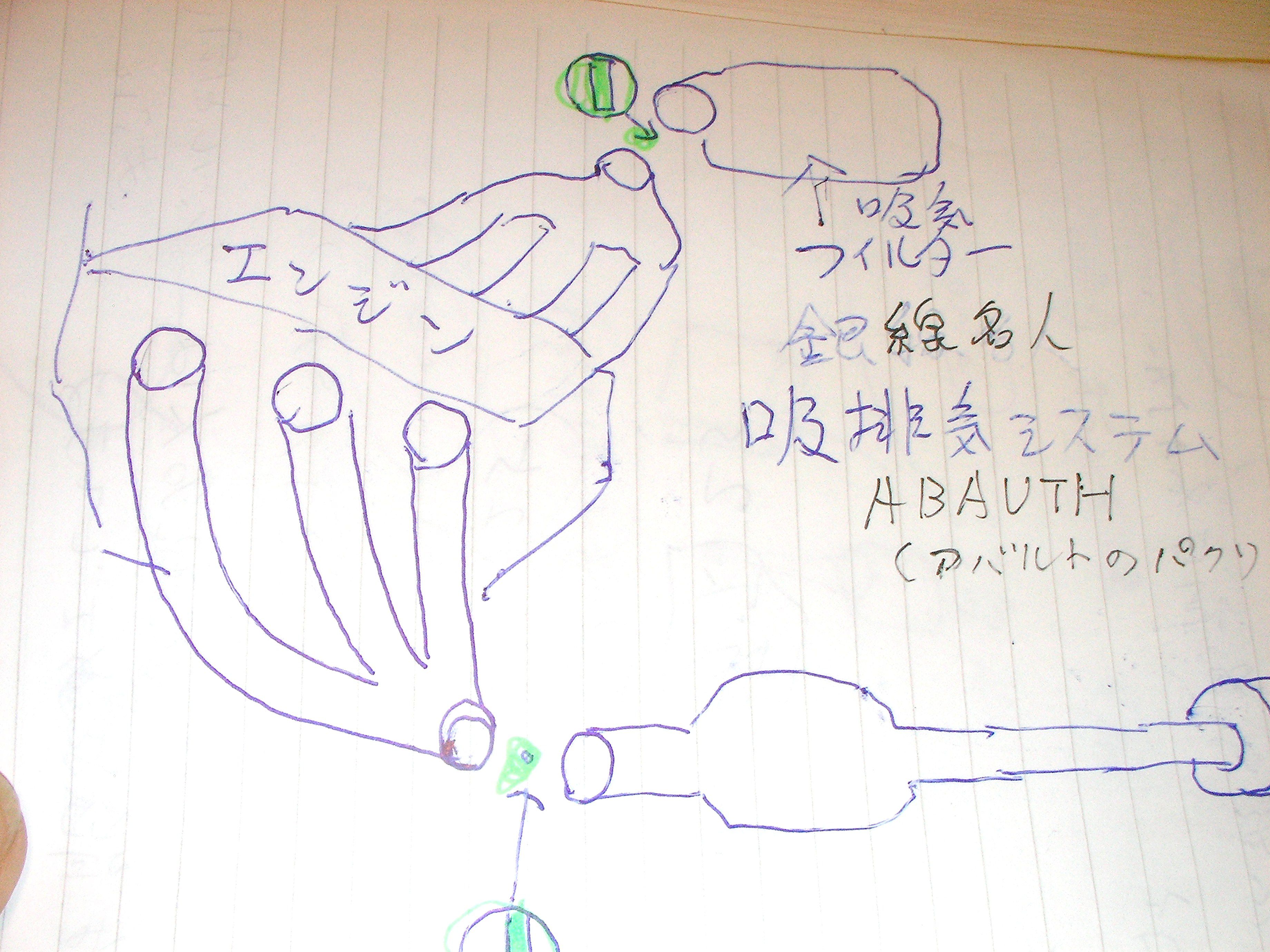 お名前は桃太郎さん私のこのブログのマークXに銀線名人が売れたというのをご覧になって、気になって気になってしかたがないというので先ほど電話を頂きました。早速準備をしては初の遠隔指導と言いましょうか、私が現場へいかないで吸排気システムを作るという離れ業をしてもらいます。上手く行けば桃太郎支店の開店です。私一人で日本全国は走れませんのでやる気のある若者は大歓迎です。ひょっとしたら逆に桃太郎に銀線名人が吸収されてしまうかもしれません。それもまた楽しからずやです。