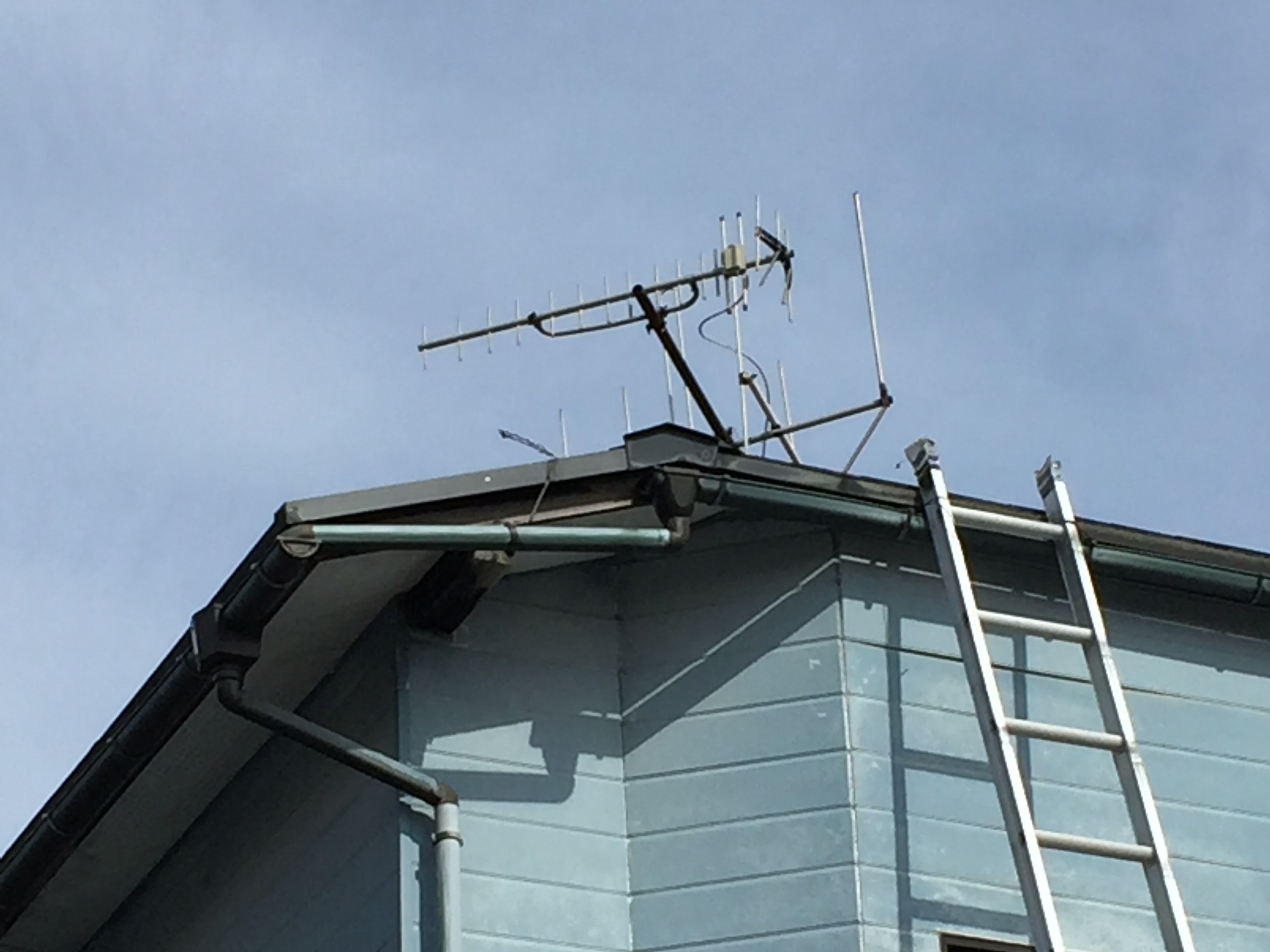 さて場所を変えて雨といチェック。ホースで屋根の水を送ってテスト。何処も詰まってはないが、長年の雪の重みで雨といが下がっているところがあった。お隣のアンテナはうつむいている。屋根馬は壊れてはないがひん曲がっているので強力な足で整える。人間で言えば整体だ。お客様は皆こんなに早く来てもらってとびっくりしていた。やはりダイレクトは強い、文字通り、早い安い上手いの三拍子だが、賢い消費者はそのことがよく解っては居ない。大きいところは、遅くて、高価くて、下手なのに。本物の賢い消費者募集中!!