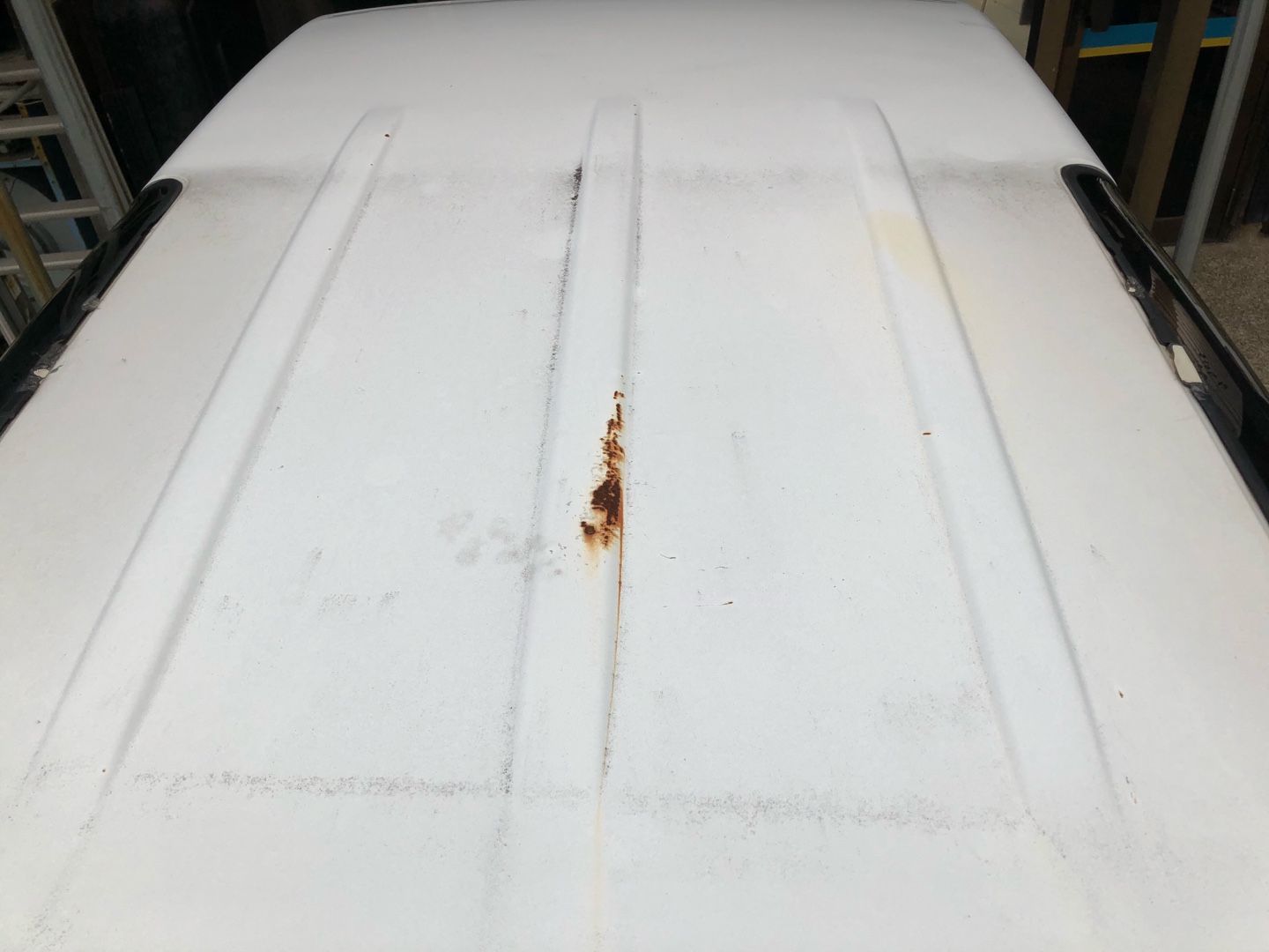 自転車吊り用のアルミを車庫?の屋根裏?から降ろした時に脚立に乗って気がついた。ジムニーの屋根が錆びていることに。水のスプレーで湿してからスポンジペーパーで磨く。水スプレーで流してボロで拭く。ドライヤーで乾かしてから屋根だけどアンダーコートする。本当はこれで全塗装しても良い。