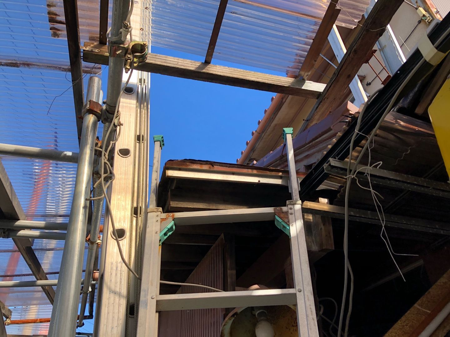 穴を埋めるのに半田を準備した。 屋根まで電源を引っ張り業務用ドライヤーで患部を乾かす。 やすりで患部を荒らす。 はんだごてを当てるがやっぱりくっつかない。 今度はバーナーで銅溶接。 これも美味くくっつかない。 仕方がないのでエポキシ系樹脂を二種類使って木片で抑えた。 しばらく様子見してこれが駄目ならまた考え中。