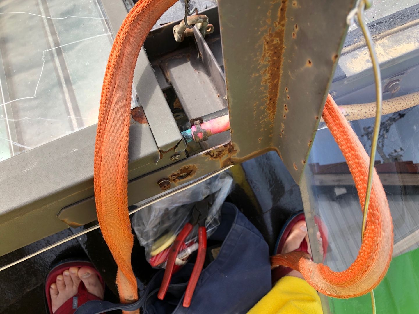 一枚しかつないでなかったのを二枚につなぎ直してシステムの電源を入れて貰いました。 ジャンジャン水漏れ 見えない目でよーく見ると1センチくらいの穴が空いていました。 さてどの方法で補修するか? 対策を練ります。 31分