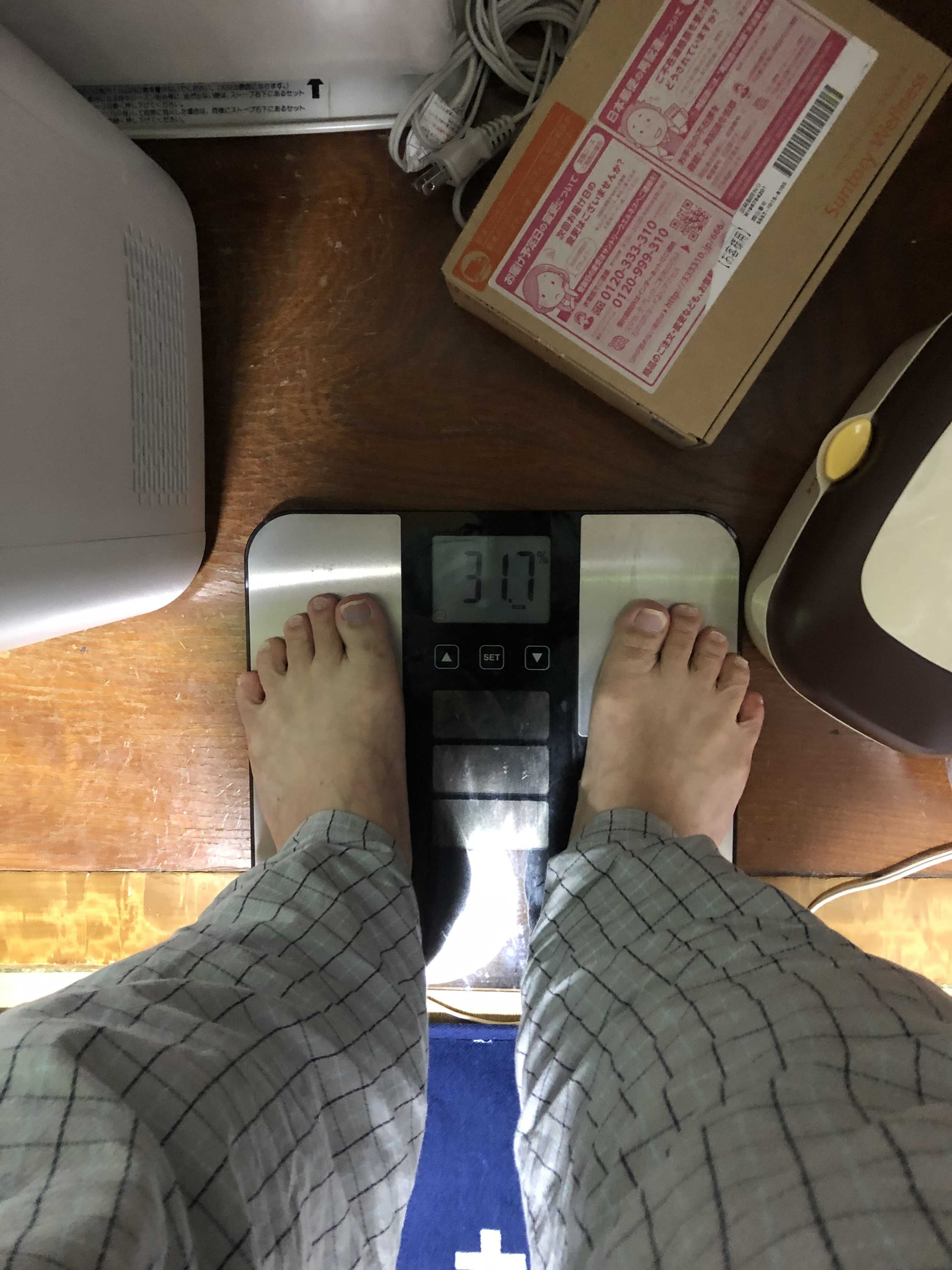 心臓ペースメーカーを使っていたので、こういう電子的というか電気で動くもの?は使っては危ないらしいのです。そういう事でもらってきました。これは中々優れたところがあります。太陽光発電で動作するんですが?室内の蛍光灯でも動作します。カシオの腕時計でもしばらく使ってないときは窓際の太陽光で数時間は充電しないと動きませんがこの体組成計は数年使わなくても簡単に動作しますので?久々に今朝は買ったのをここに書きます。170cmあったのですがちじんでしまい165cmしかありません。体重78.2㌔体脂肪 31.1%骨量 3.3㌔基礎代謝 1682Kcal内臓脂肪 14%最後に体年齢がなんと 86歳?去年は自転車にまあまあ乗ってましたのですが?今年は孫の御守りで全くと言っていいほど乗ってません。私の似顔絵ですが?84キロの頃のものです。一度10キロほど落としたのですがすぐに戻ってしまい、、、、その数年後?立ちくらみではなく?寝くらみしたので?そのことを嫁に話すと?血圧が高いのではないかと?測ってみると高かったので?これは危ないと思い早速自転車運動ですね?自転車に乗って銭湯巡りですね?其れで成功いたしました。