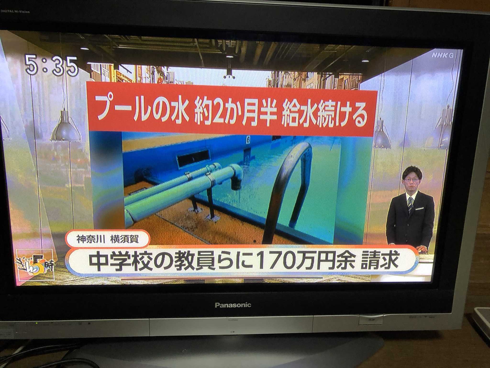 神奈川県横須賀市は21日、市立馬堀中学校(同市馬堀町)でプールの給水栓を約2カ月間、断続的に開けたままにしたことで、約423万8千リットル(25メートルプール10~11杯分)の水道水が流出したと発表した。 プール管理の担当教員が水泳の授業での新型コロナウイルス感染を防ぐために、プールの水を常にあふれさせて水質をきれいにする必要があると勘違いしたことが原因。市は上下水道料金の損失額約348万円の半額を、担当教員(約87万円)、校長(約43万円)、教頭(同)の3人に損害賠償として請求した。 市学校管理課によると、プールろ過器を稼働させた昨年6月23日から担当教員が給水栓を開き、休日を含めて24時間プールに水を入れ続けたという。 別の教員が気付いて栓を閉めることがあったが、そのたびに担当教員が給水栓を開いていた。プール開放をしていなかった夏休み中も含め、同年9月3日まで水が出続けていたという。 同月2日の検針時に学校全体の水道料金が、コロナ禍で水泳の授業がなかった一昨年の11倍となったため発覚した。神奈川新聞社