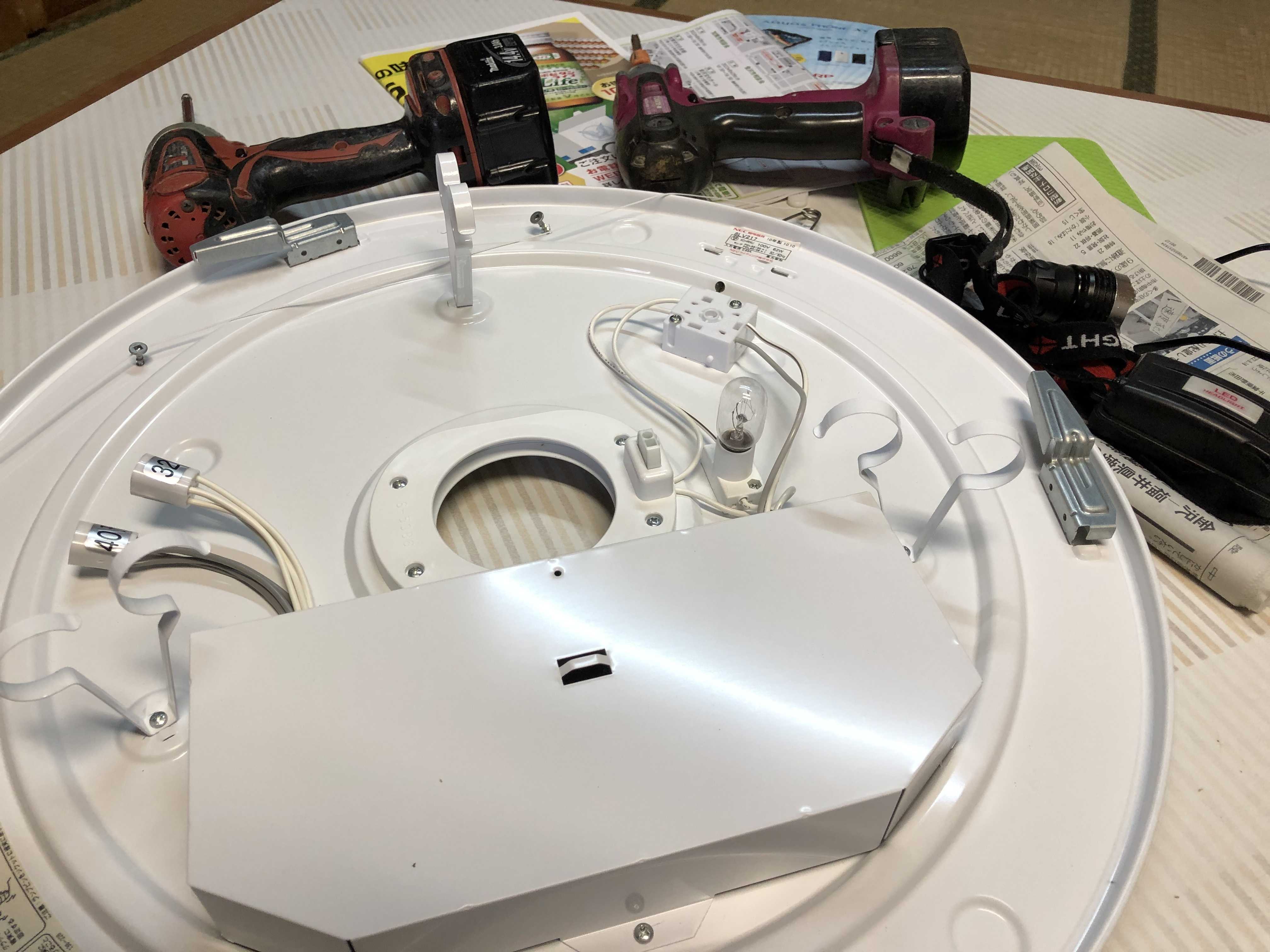 居間のメインの証明の修理?時間がたつと点いたり、つきっぱなしは良いが一度消すと点かなかったり?ゆうしゅうなでんきやである私でも???長年騙しながら使ってきた?昨日涼しかったので直そうと思ったのだが昨日はお坊ちゃま三昧!!外して ばらして 半田付け?昔 一度 基板工場で仕事があった?自動半田の工程を見たがこりゃ駄目だと思った?大分昔なので今は良くはなってるだろうと思いたいのだが?良くなるよりも悪くなってるものの方が多いのだ!!昔ビクターの修理をしていた人に頼んで家の修理をしてもらっていた。殆ど虫眼鏡と半田ごてではんだミスを見つけて補修していた。その時のノウハウを思い起こして修理?してみた。まず半田ごて、一個新品を出したのだが調子悪い後二個追加したがこれも??4個目で何とか出来たのではないか???真ん中の丸いのを修理しました。数秒しかつかなかったのが点いている?成功か?分からない??まあ自分ちだから上手くいかなくても苦情はこない!!真ん中が付かなくてもあと二つある。全部で4個あったのだが一個は壊れてしまった。それはLEDである。私は蛍光灯でも古いのでもOKだ!!まあ殆どお金は出してないから壊れても構わない?買っても安い!!こういう器具は不思議なことに中古屋さんは意外と高く私には見える!!絶対にこれは新品を買います!!