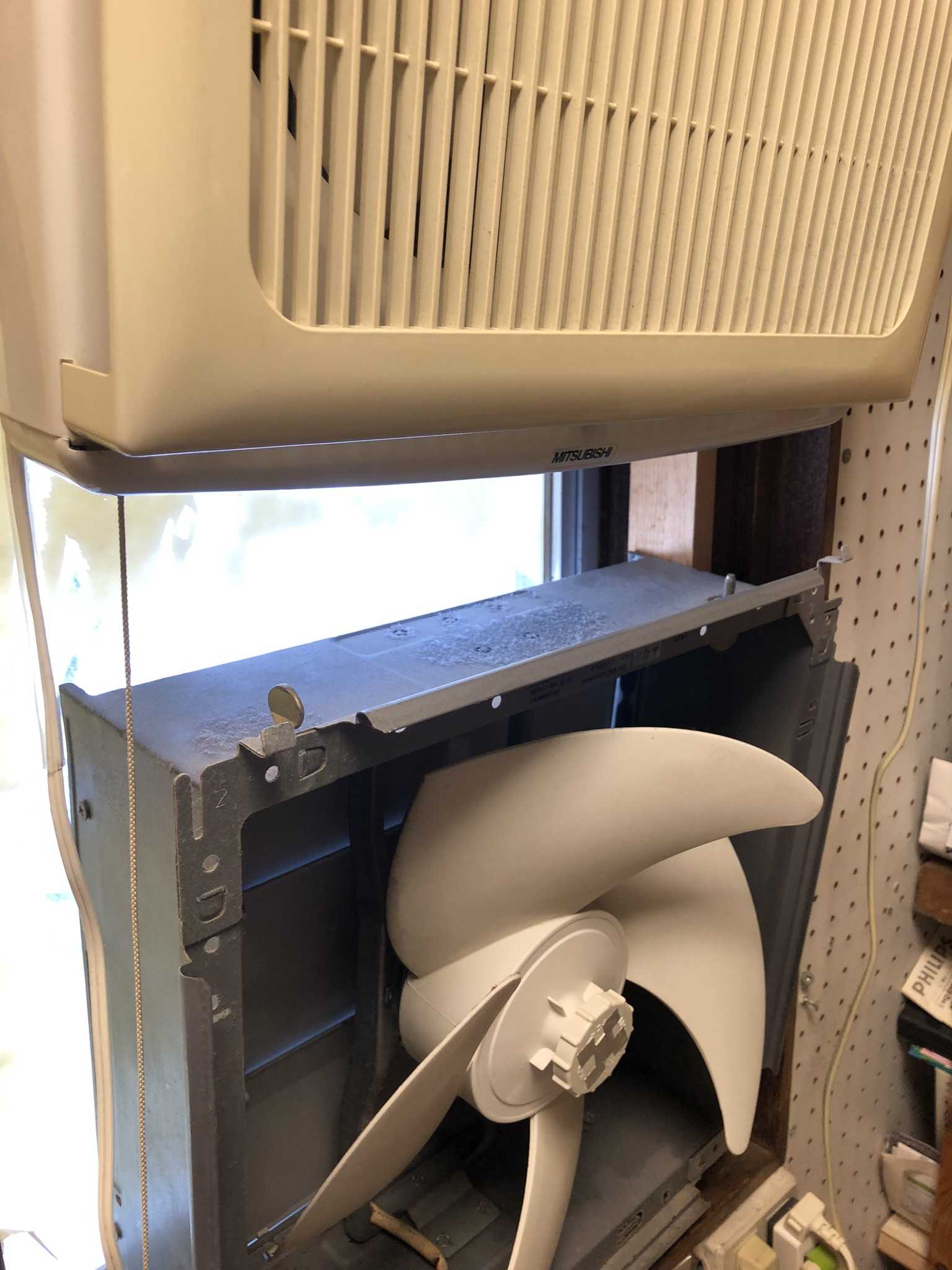 一台外して天井裏へ持って行く。ここは天井裏です。これと交換して?はいこの通り、調子よく動いてます。