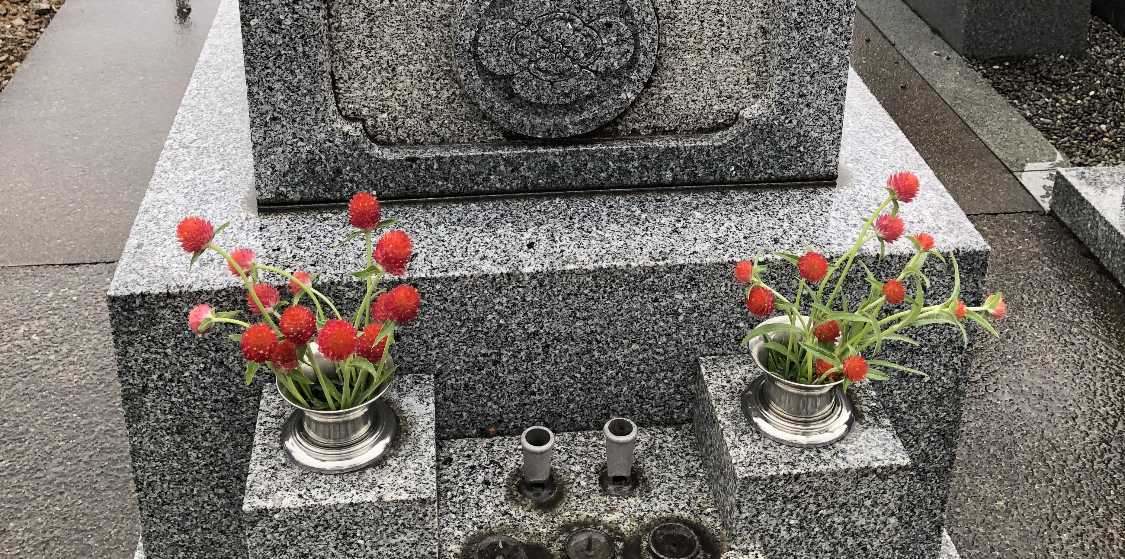 自家栽培の花を持って行きました。もう一つ、じょ御王様よりのクレームです。今度ブラシを持って紋を掃除します!!
