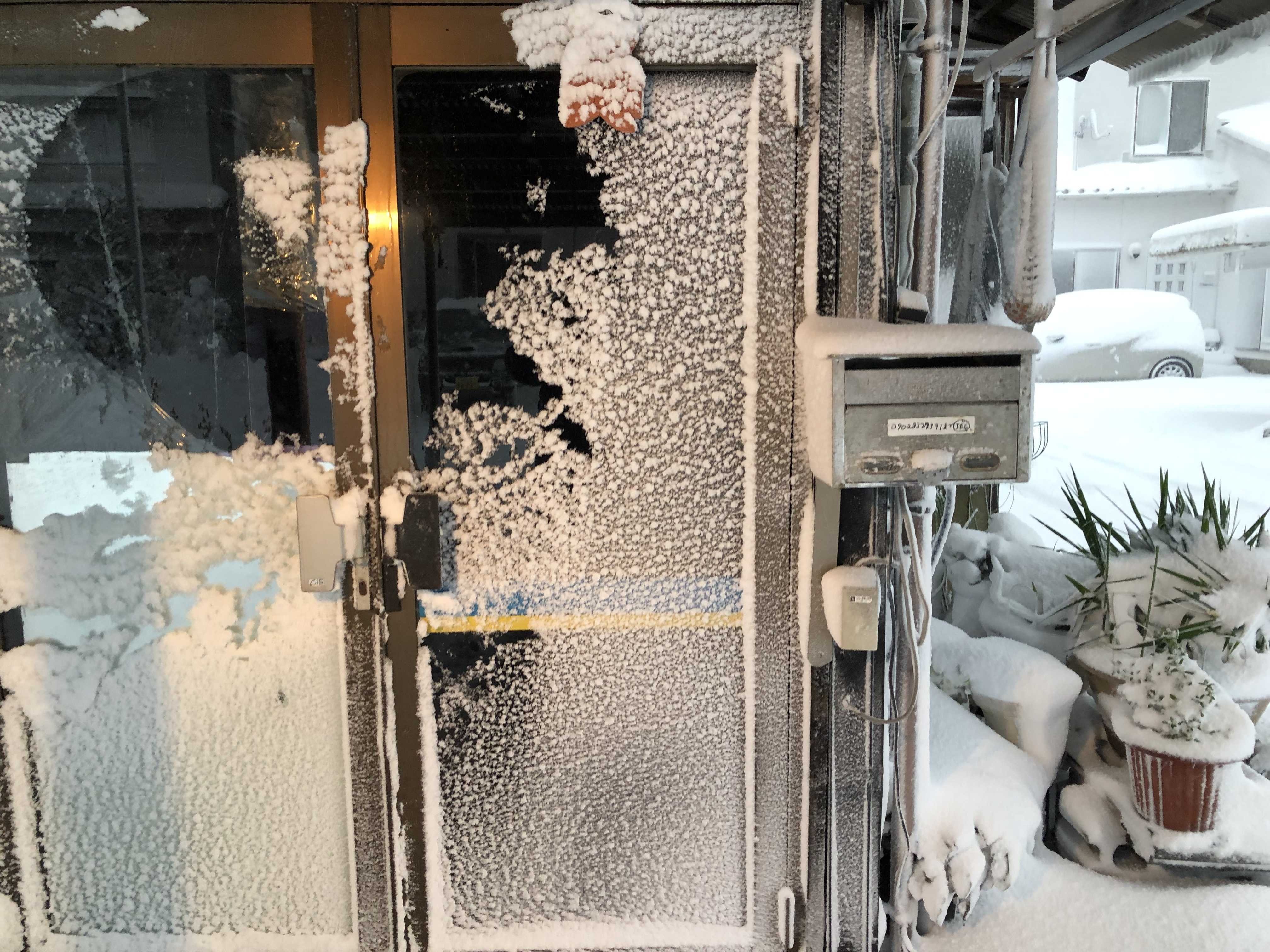 うちの玄関前私のジムニー 何だか雪で綺麗?一台ゴミを捨てに行っただけで防止にこれだけの雪が?いツモは外が見えるのだが?