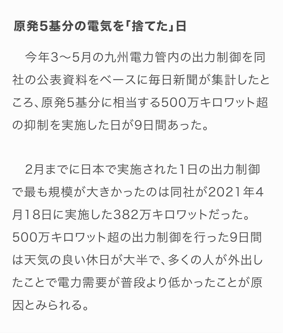 捨てた分の電気料金はだれが払うのかな?まさか?九州電力は払わないだろうな?ソーラー発電の料金は勿論その家庭や企業に支払われたであろうに?