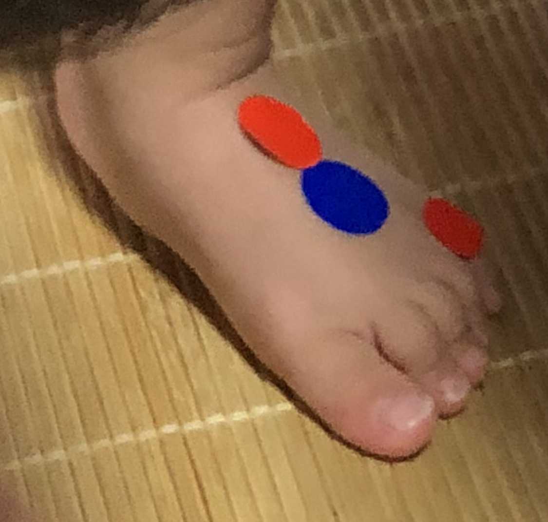大好きな車やらの紙は準備してあるのだが?そしてそれにも貼ったのだが、それでは足りずに自分の両足や服にもたくさん貼っていた。