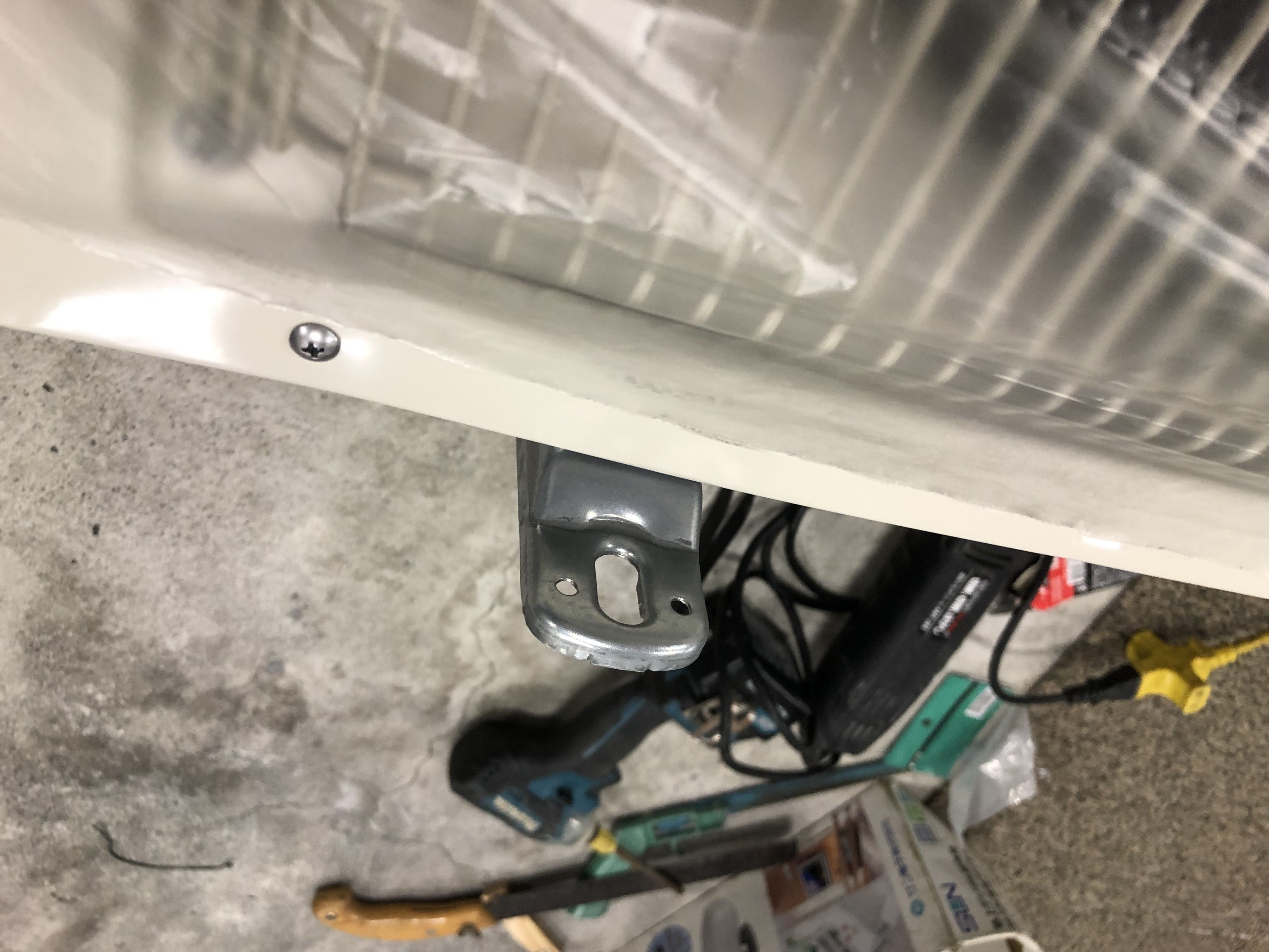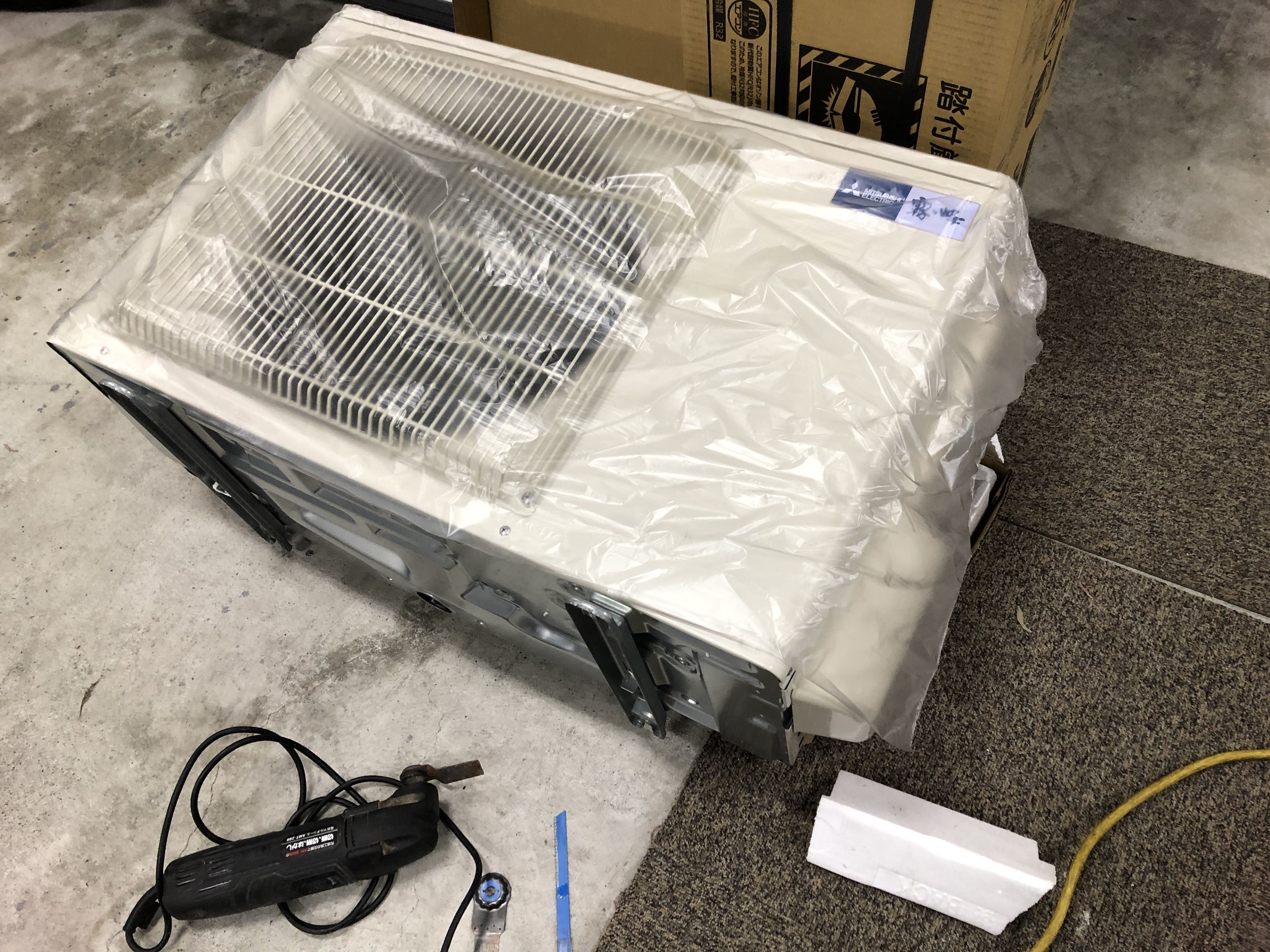 室外機のつま先が邪魔ですので4つカットします。