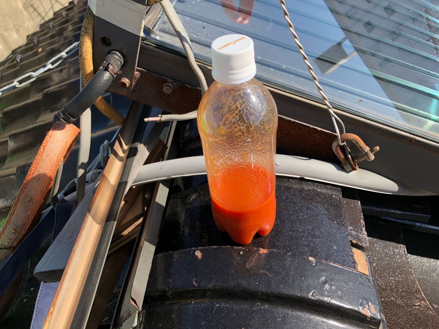 もう一つ、動作しているパネルは触れますが、故障中のパネルは太陽熱を回収してないのでその分熱くて触れません。