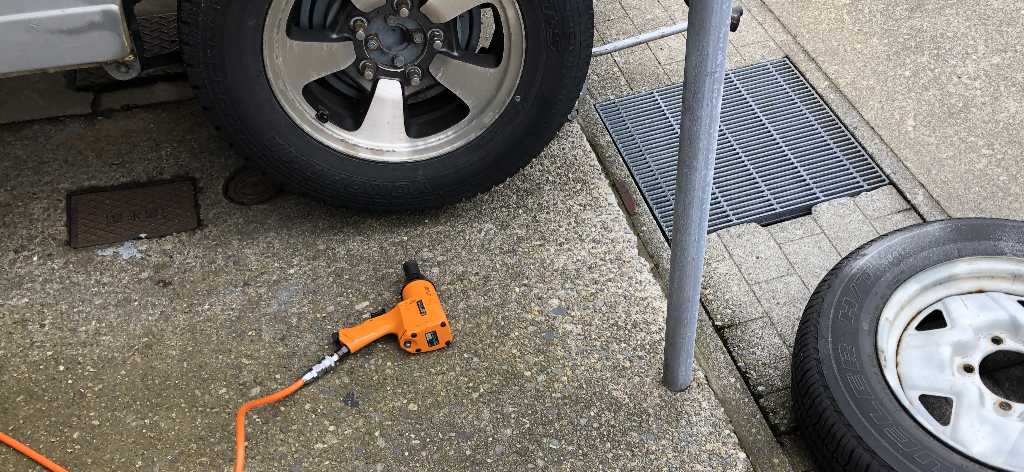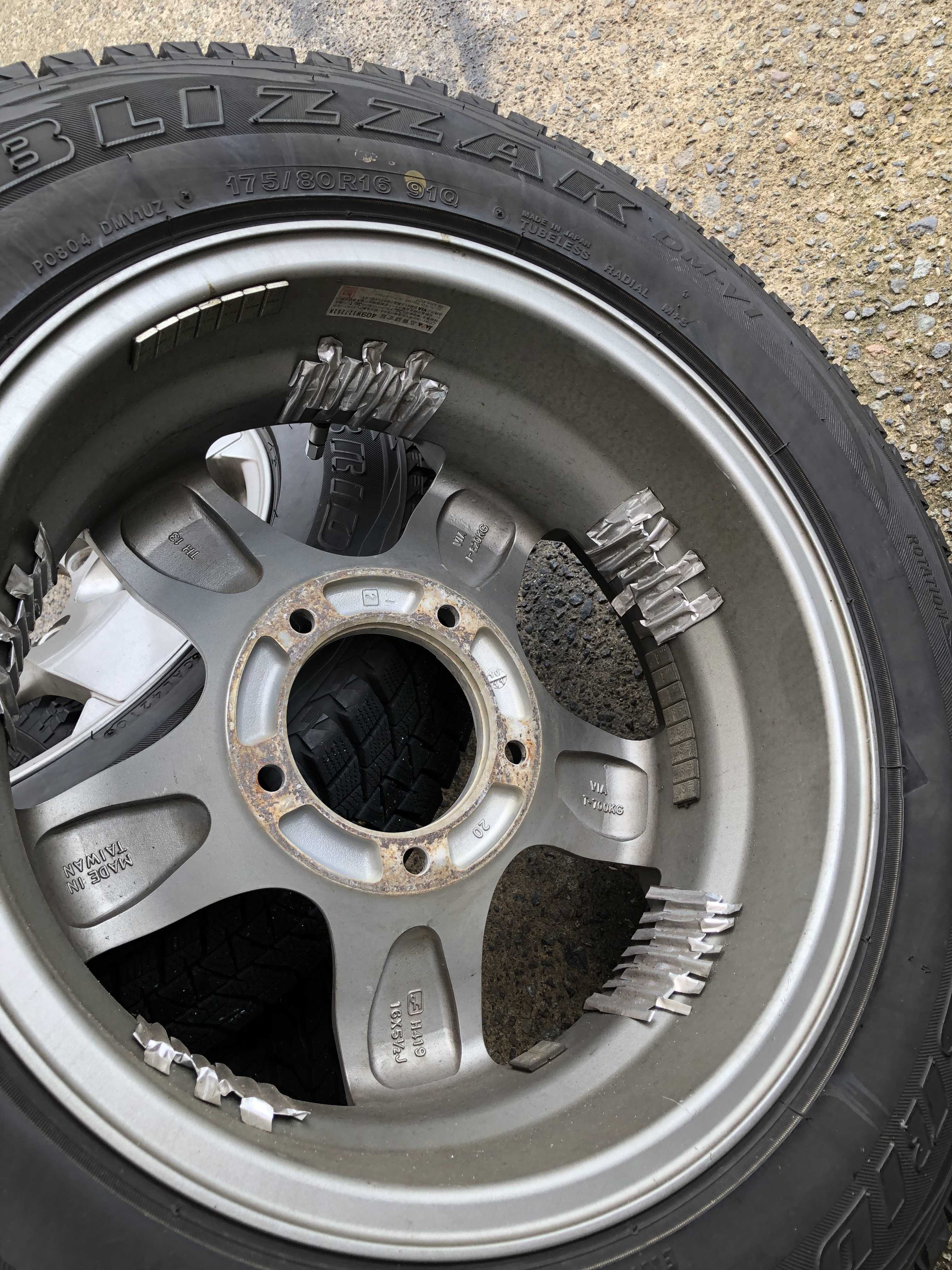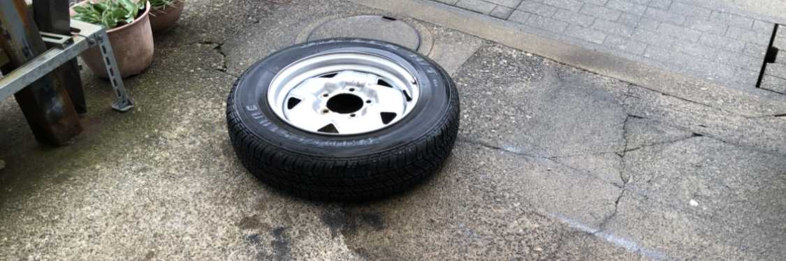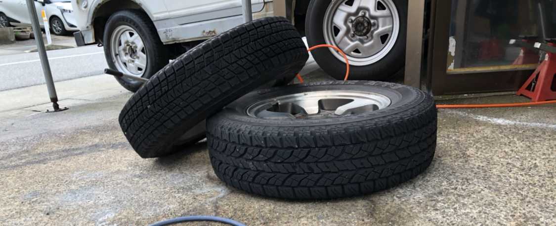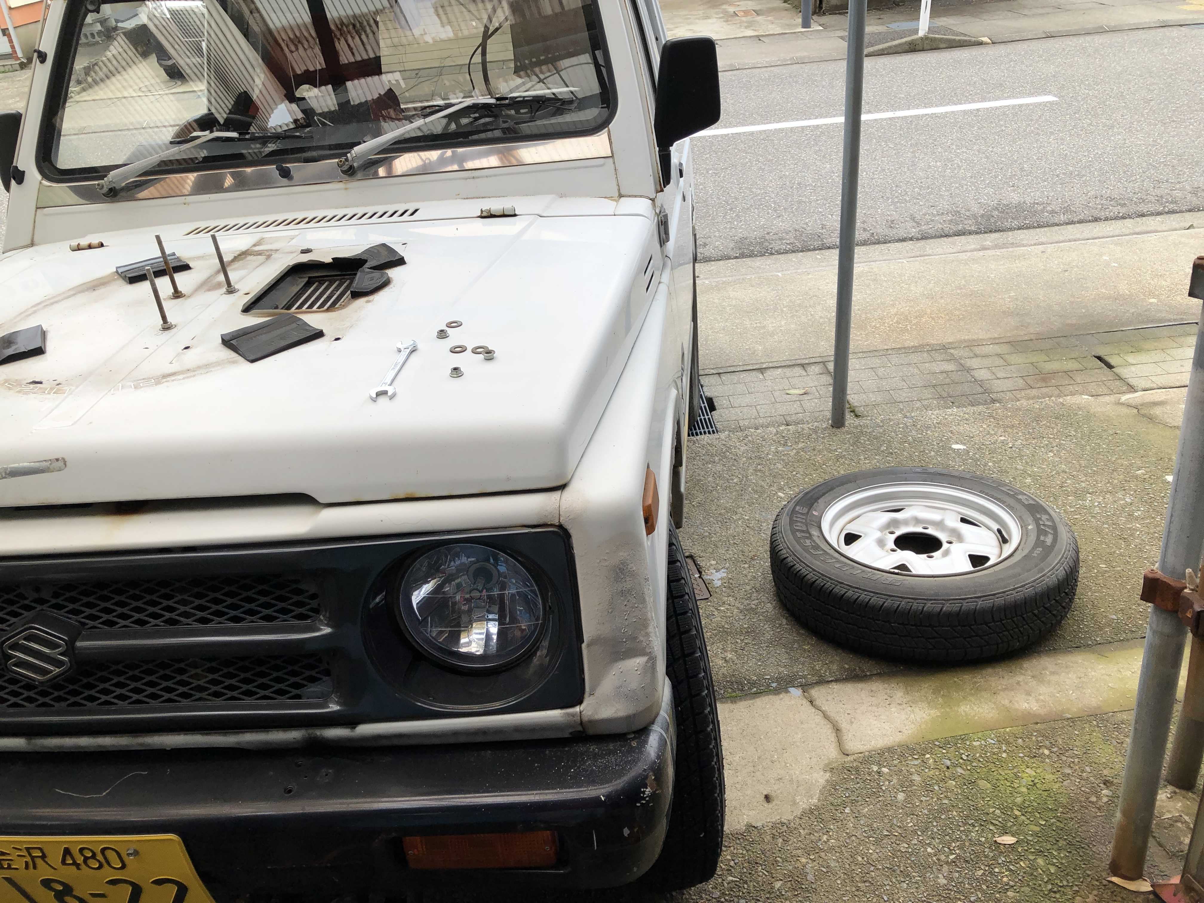 ボンネットに乗せていたタイヤともう一本の新品を取り付けました。