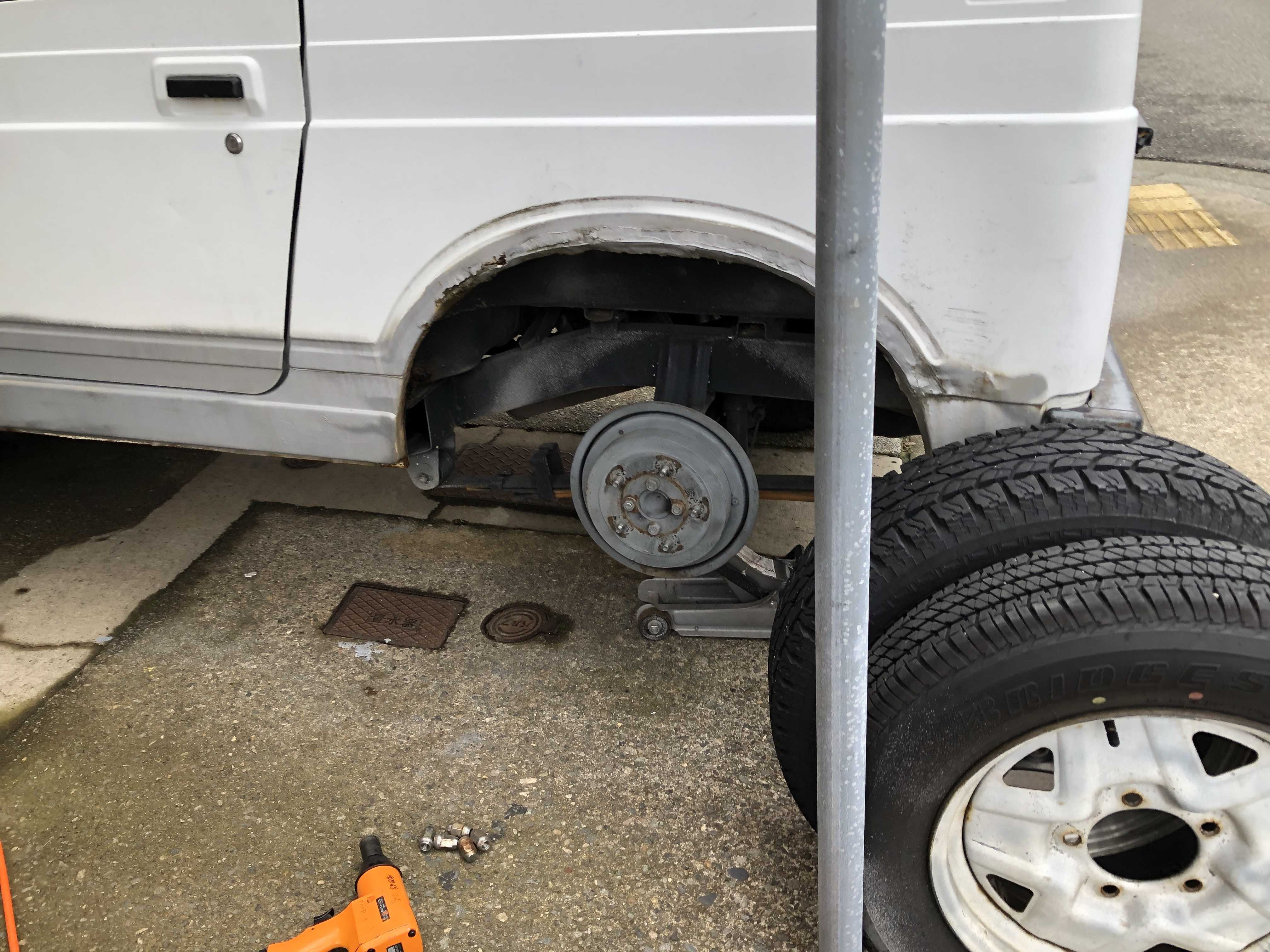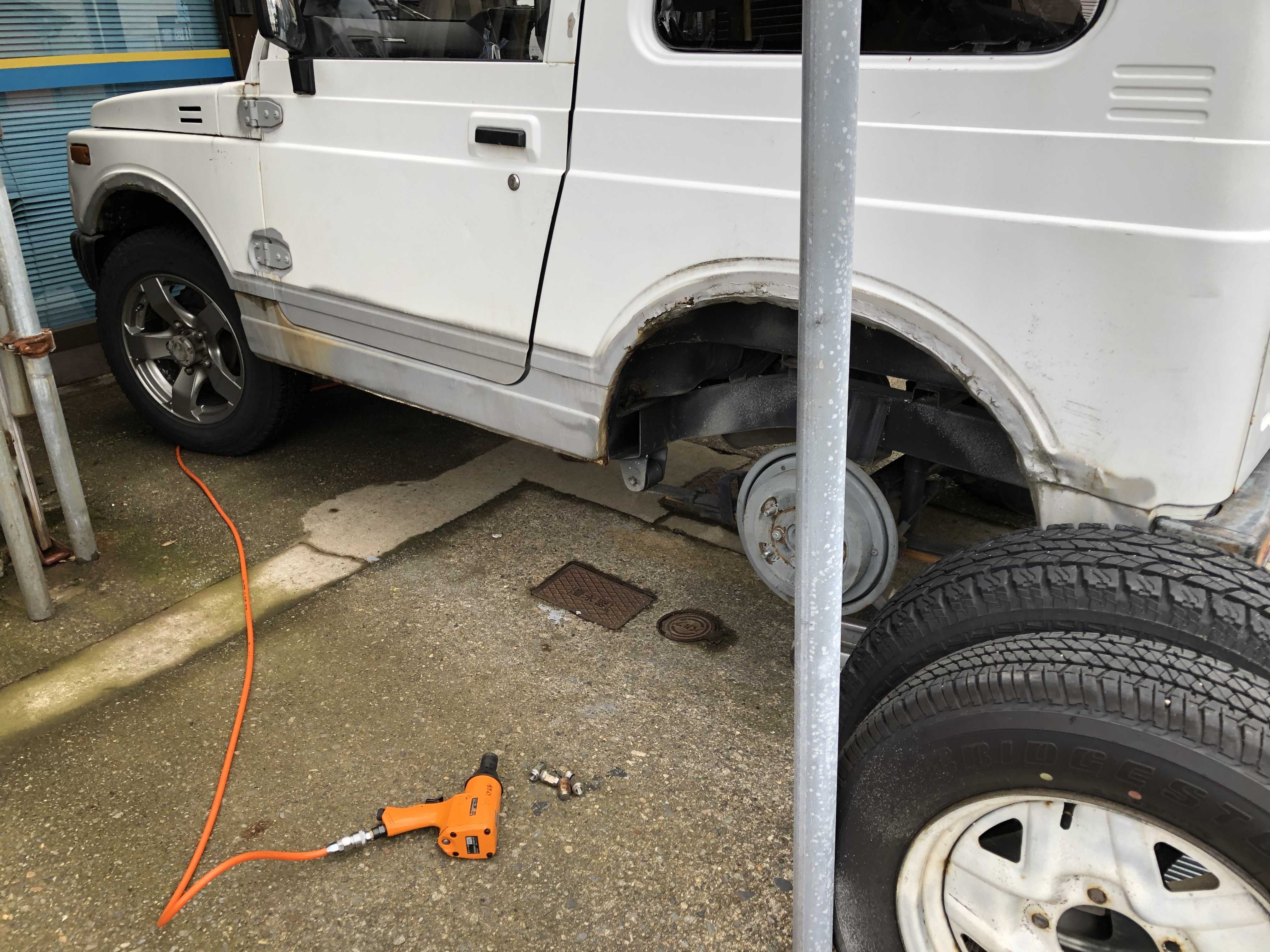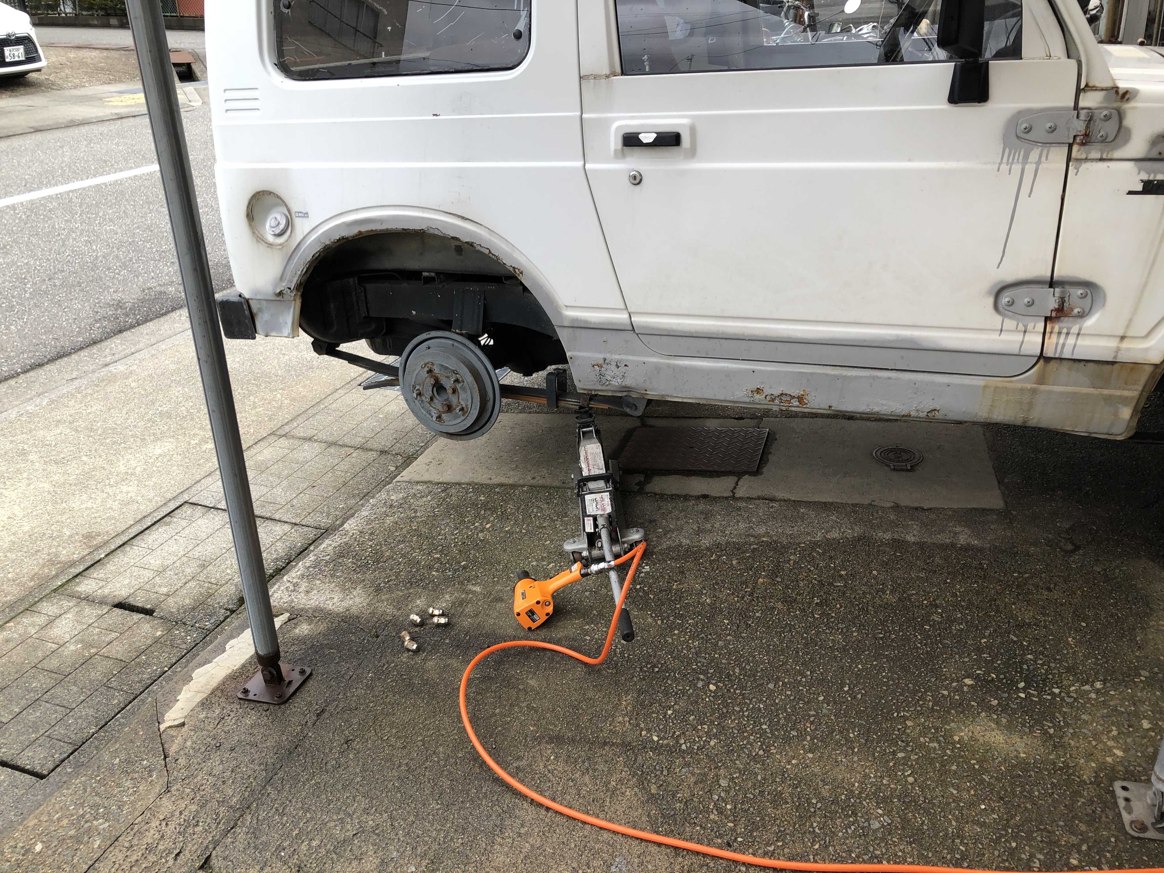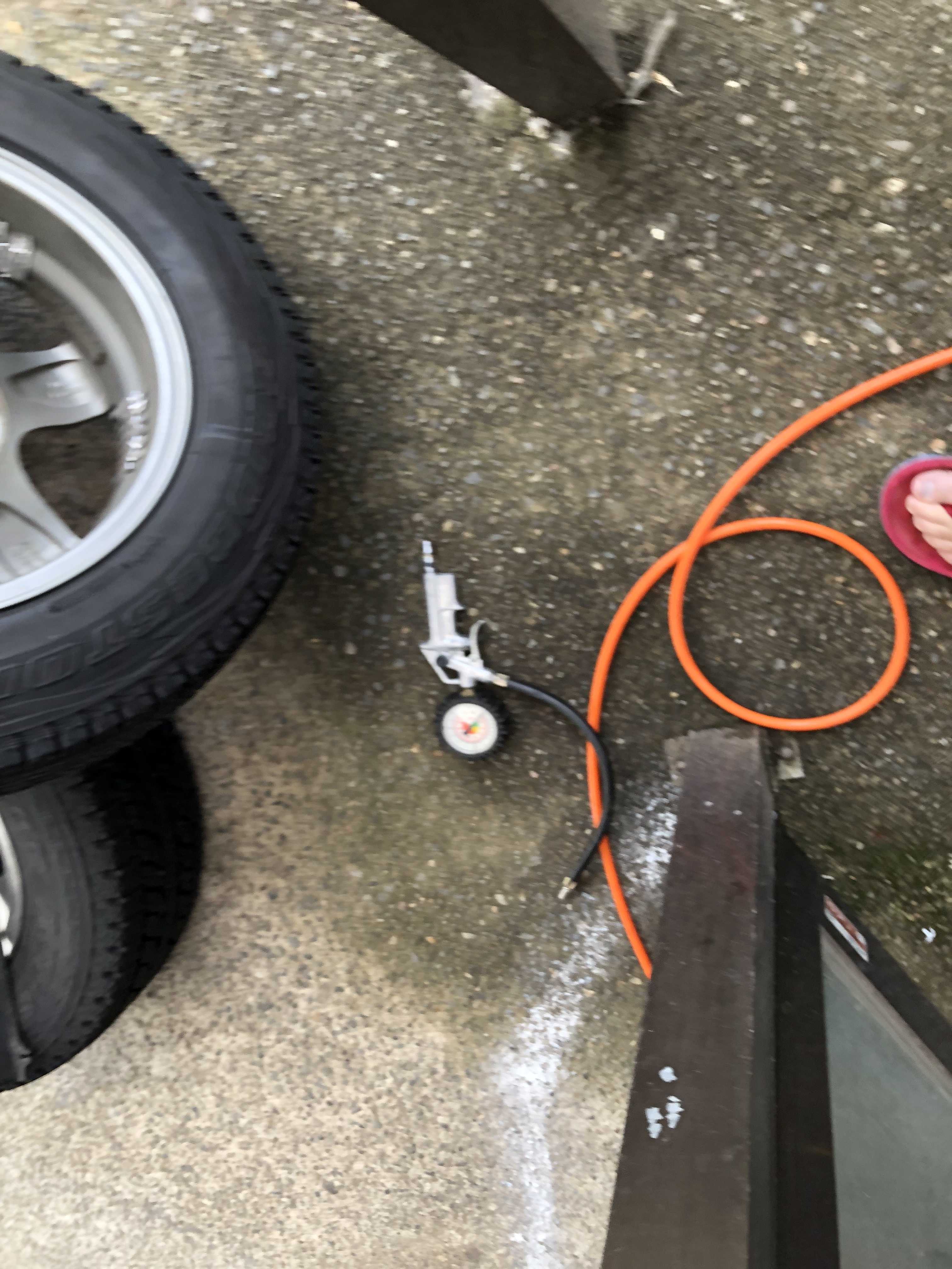 ボンネットに乗せていたタイヤともう一本の新品を取り付けました。