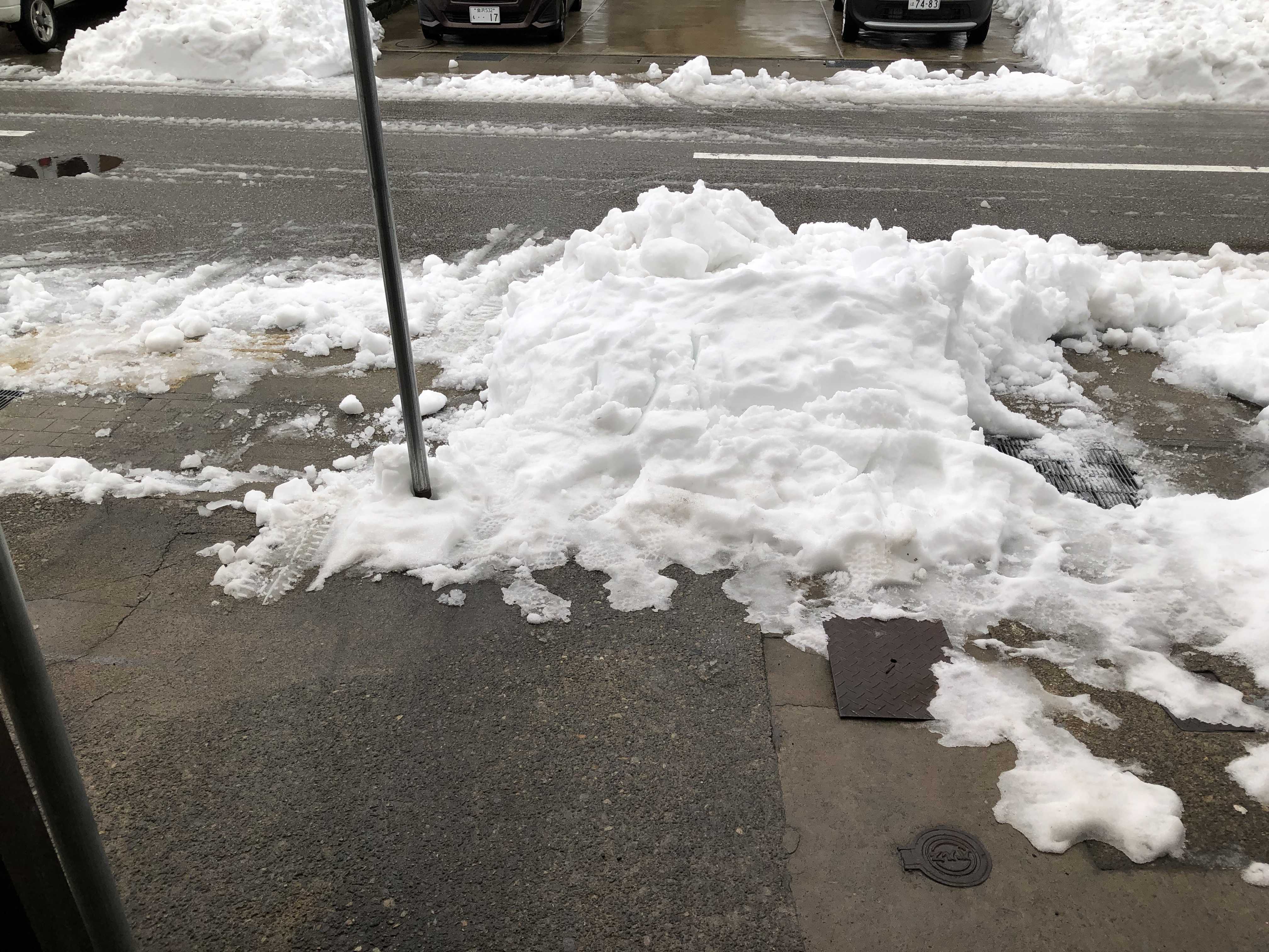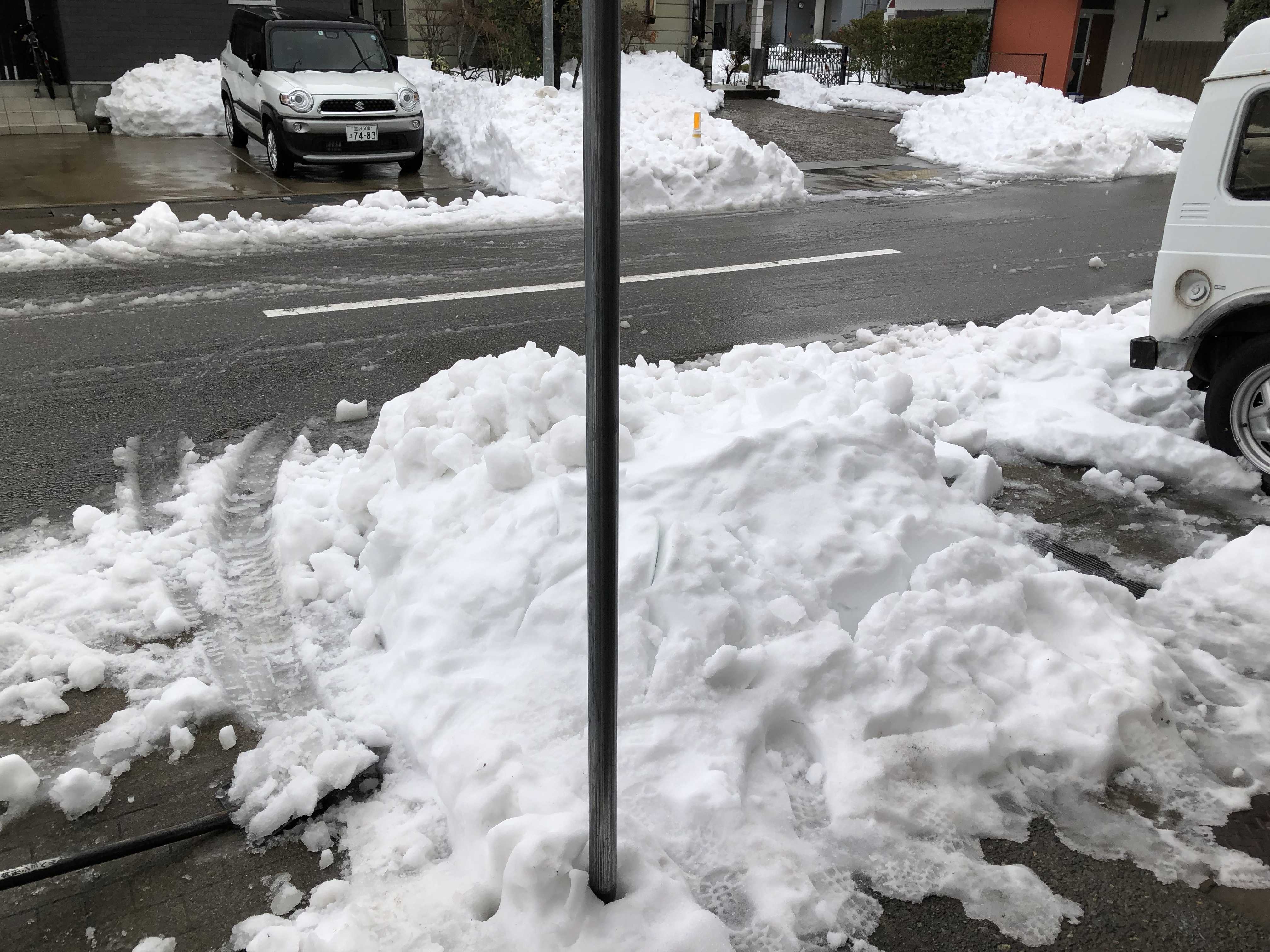 四本のタイヤの線路が出来て車はハンドルも効かず 駐車してある車に ぶつかりそうになってました。