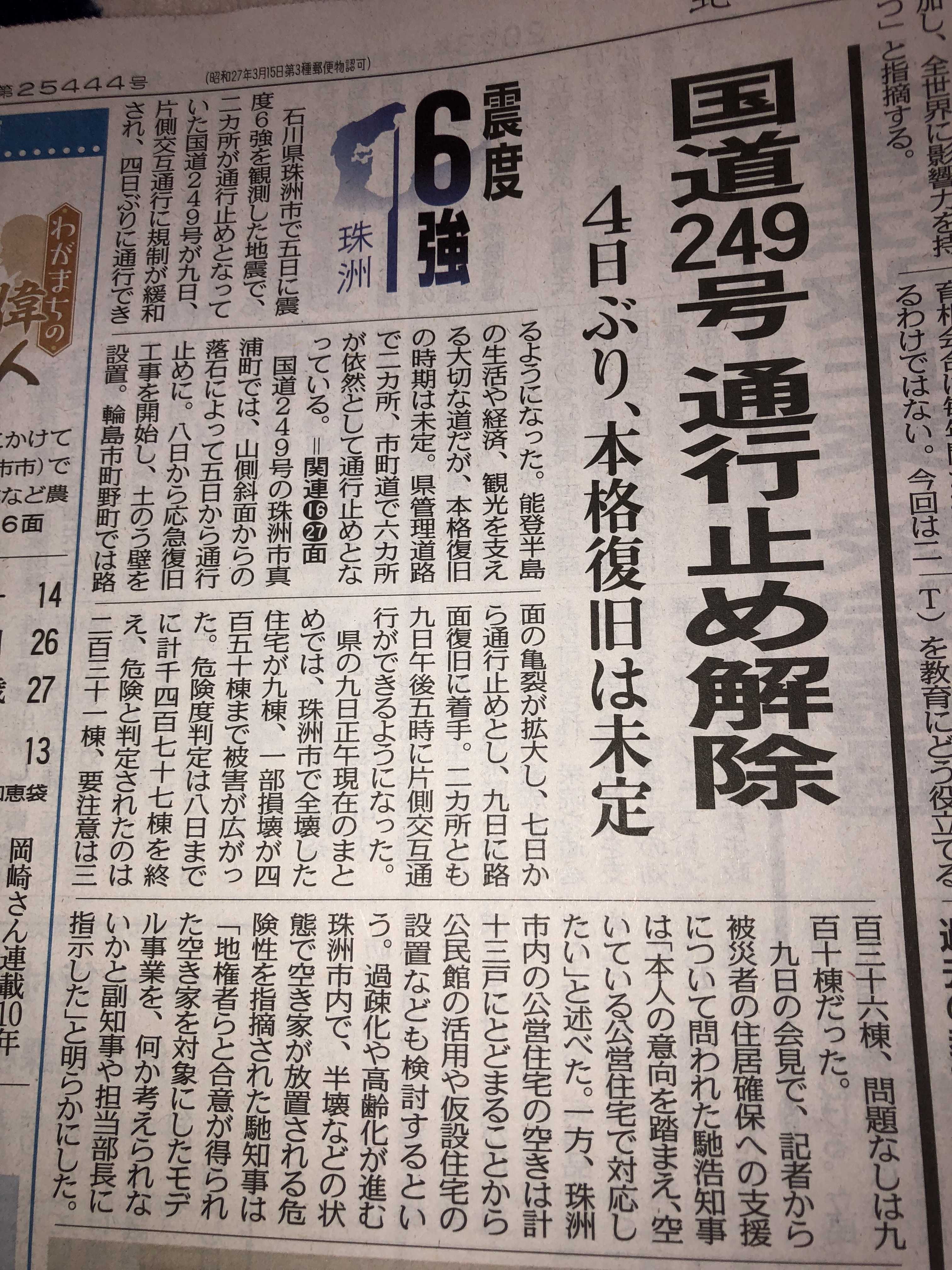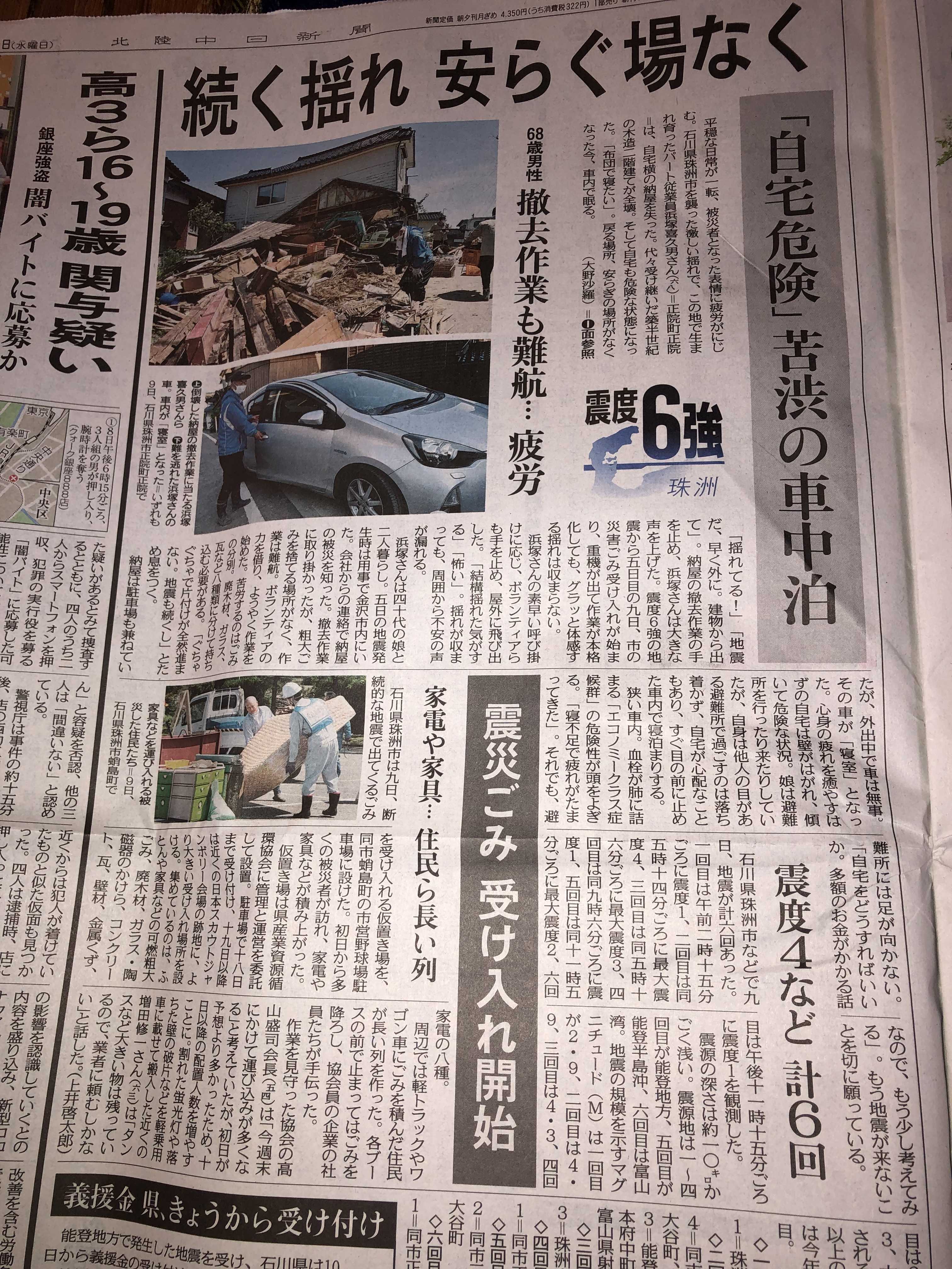 先ほど能登の先端 珠洲で震度4だったが ここ金沢では