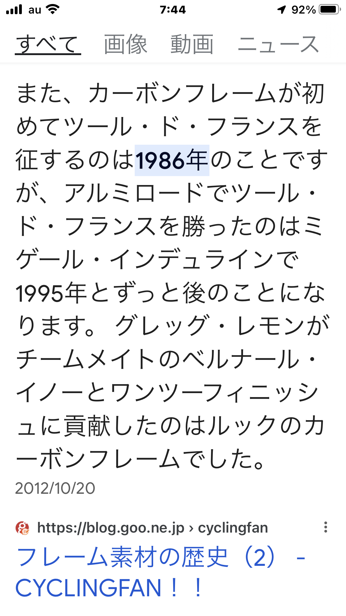久々にLOOKカーボン、ツールドフランスでグレッグレモンとベルナールイノーがワンツーフィニッシュしたものですよ!!
