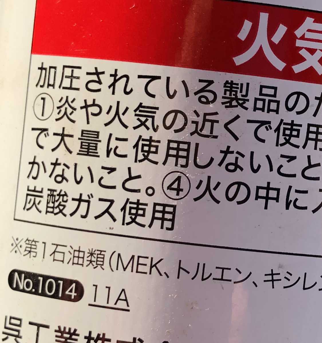 これはTOMOSの整備に使ったキャブクリーナーですが 炭酸ガス を使ってます。