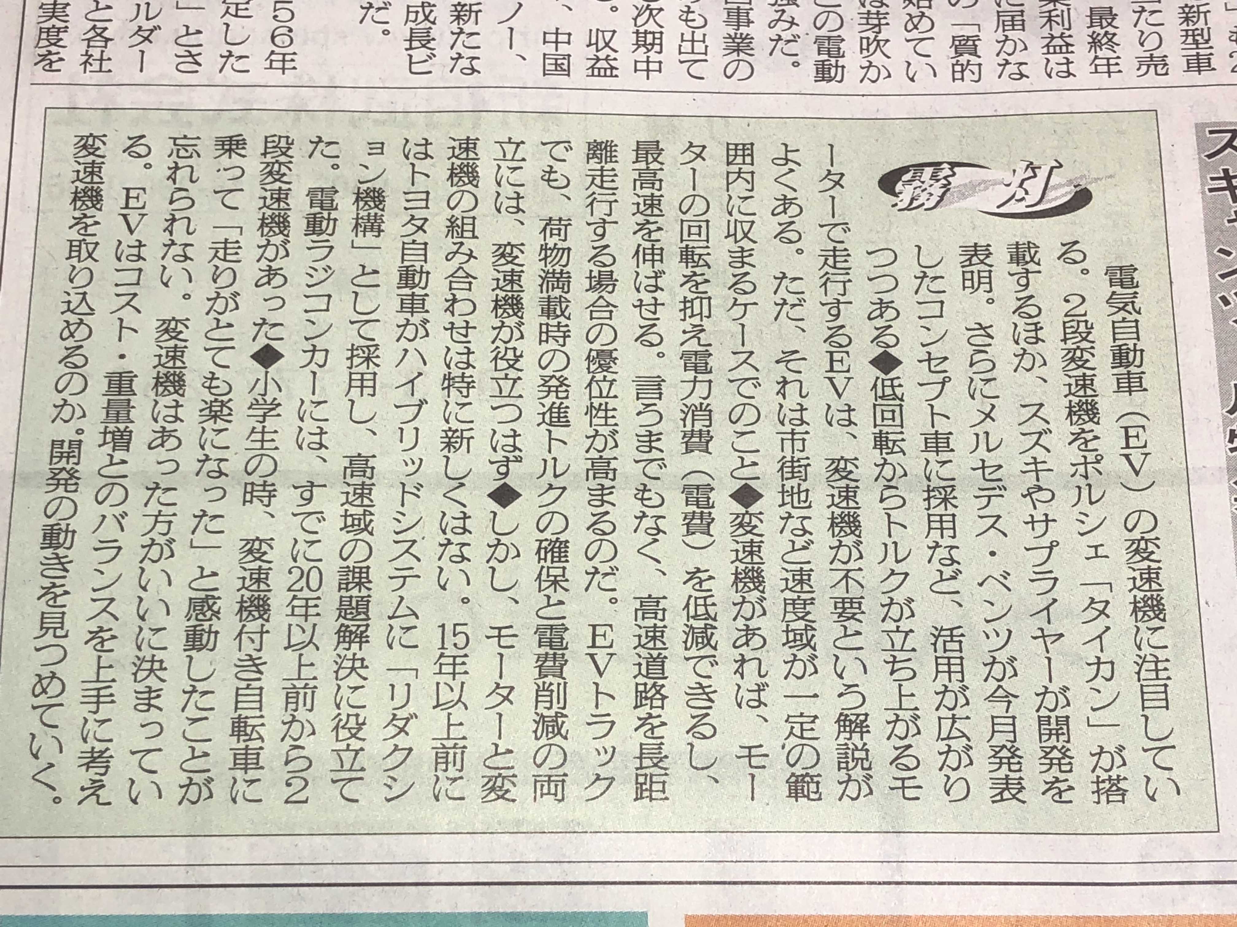 また、電気自動車の変速機に関しての情報が私に寄せられた。