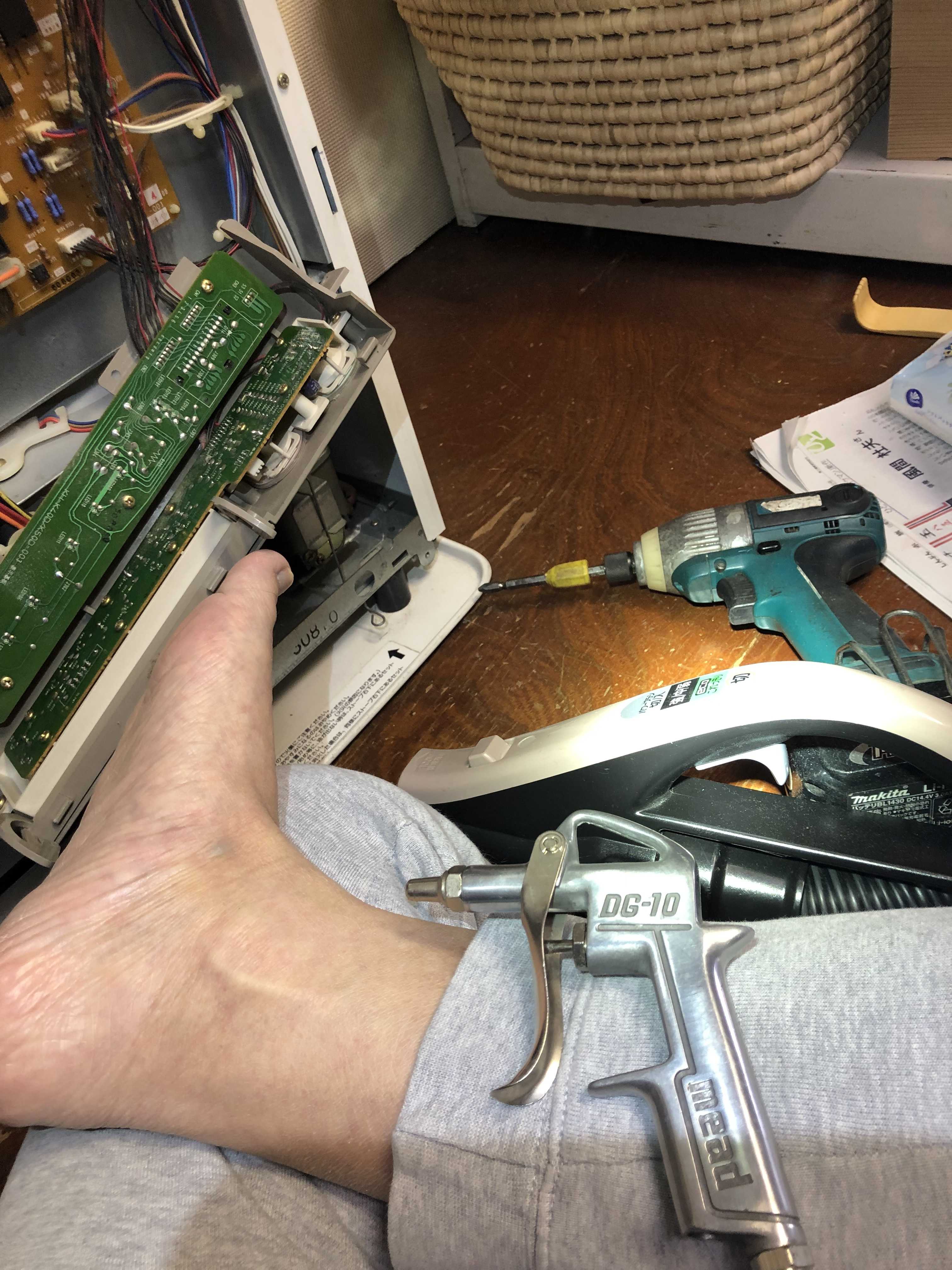 最初は掃除機だけでバラシテ出て来たホコリを回収のつもりだったが、それでは弱いとコンプレッサーで何度も何度も吹き飛ばしてから掃除機でというやり方をした。