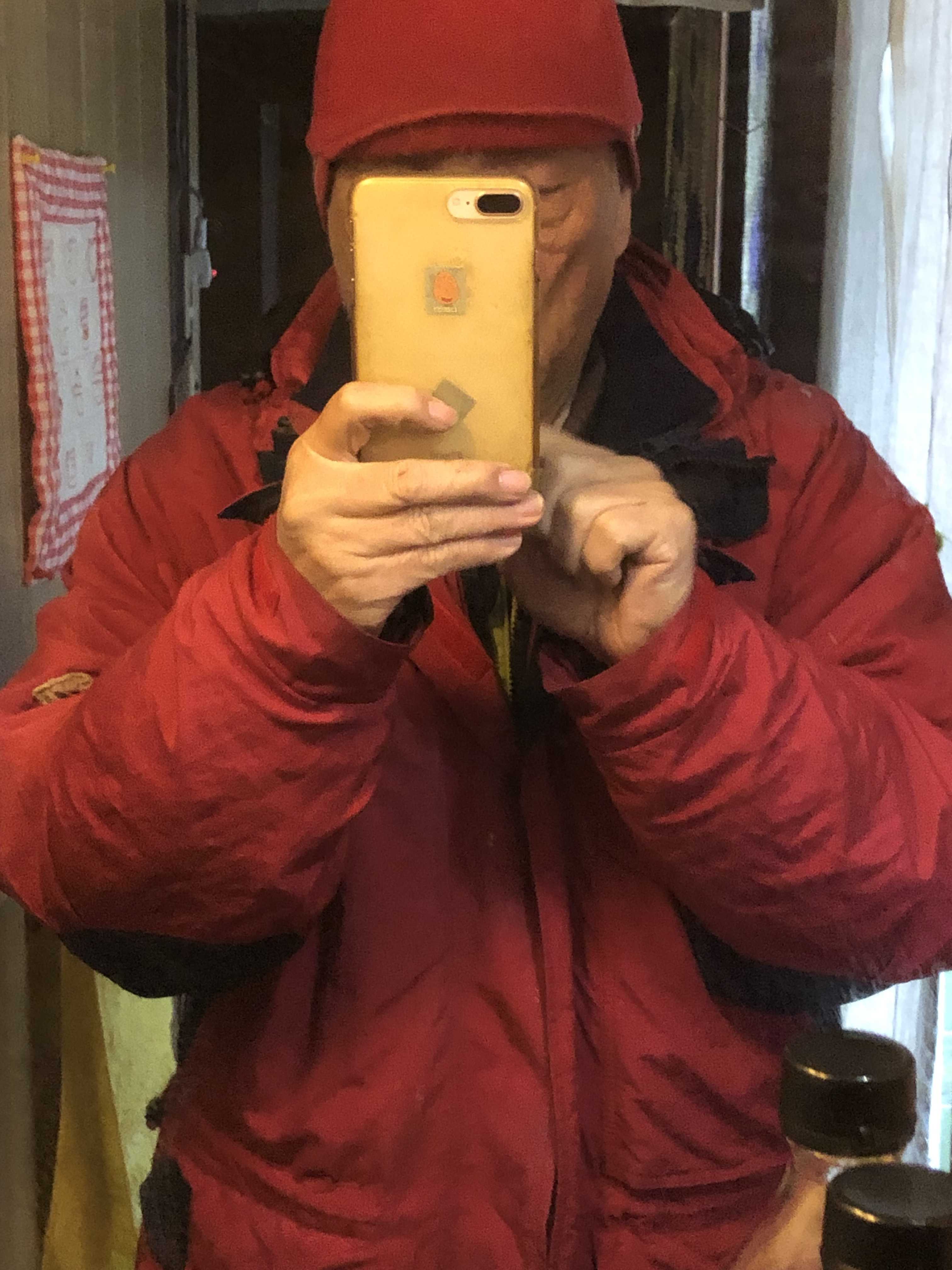 上着を沢山来て帽子もかぶって?