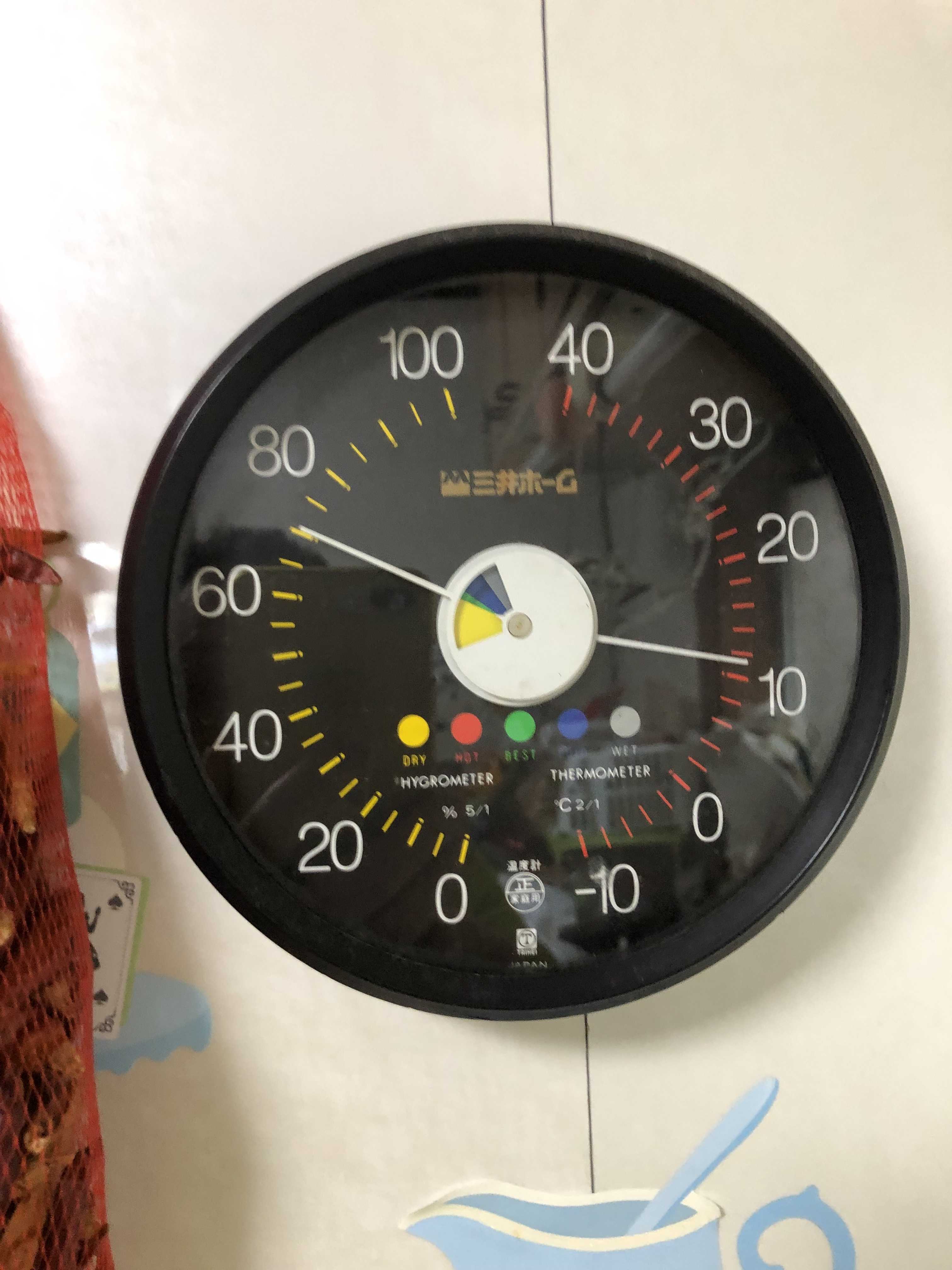 温水ルームヒーターで暖房している部屋の隣は16℃の42%。