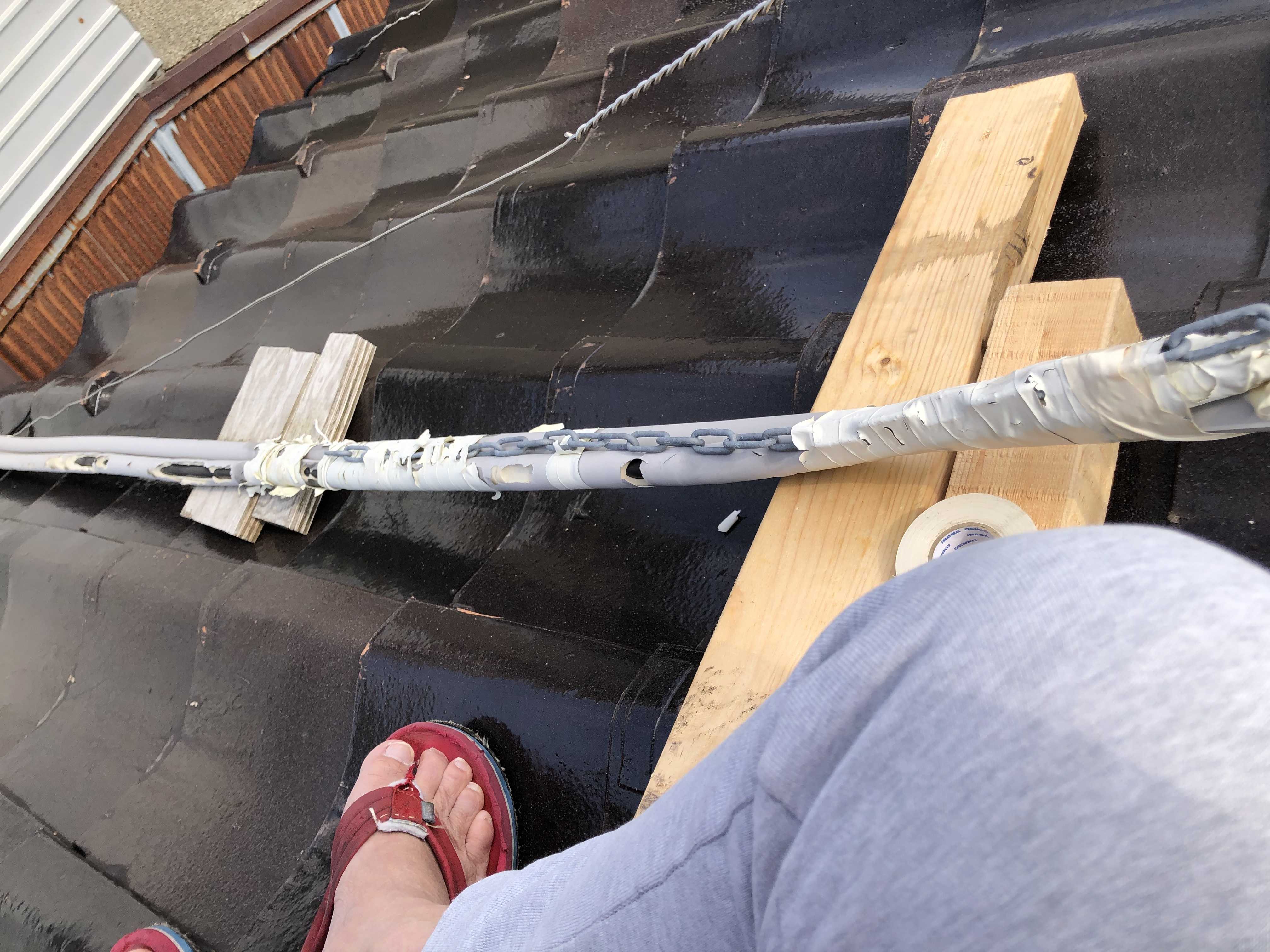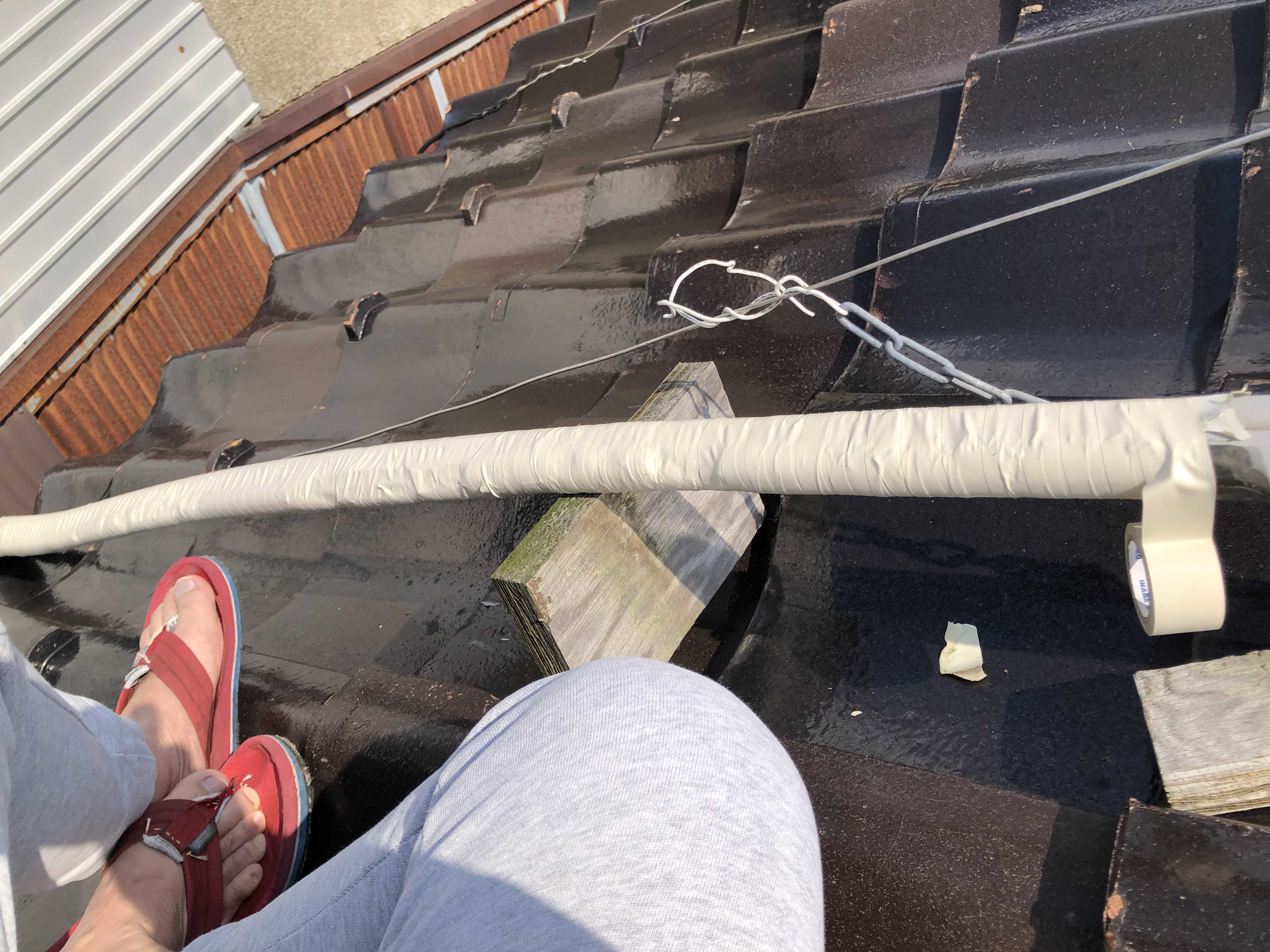 雨漏りの瓦を修理出来ないので随分考えてここに三枚入れることにしまして、やっとの事で一枚入りました。