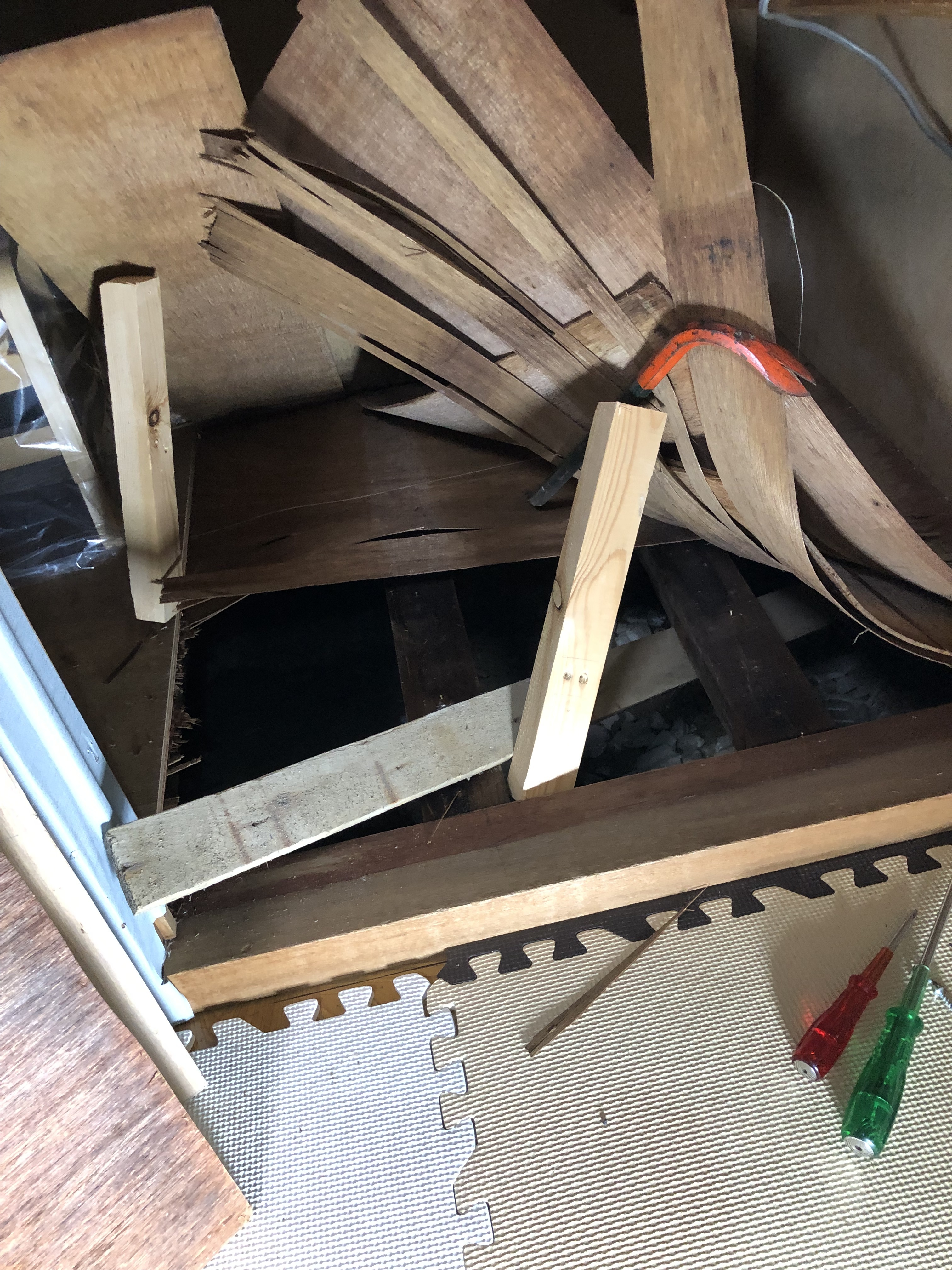 下のコンパネと奥のコンパネ右の木片を私が後で補充したようで解体するのも大変だ!!